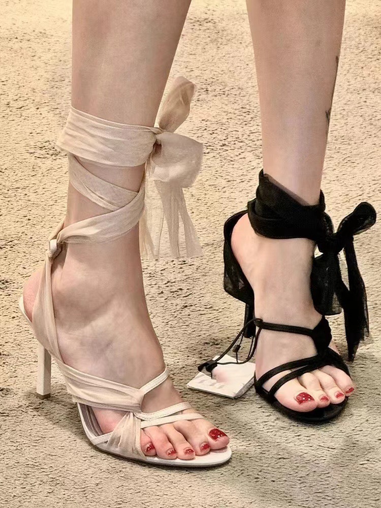 ZAZBLBQNRA 여성 신발 요정 스타일 스트랩 사이버 셀레 브럼 오픈 발가락 하이힐 샌들 여성 여름 하이힐 슈즈 프랑스 스타일 샌들스토어 가기