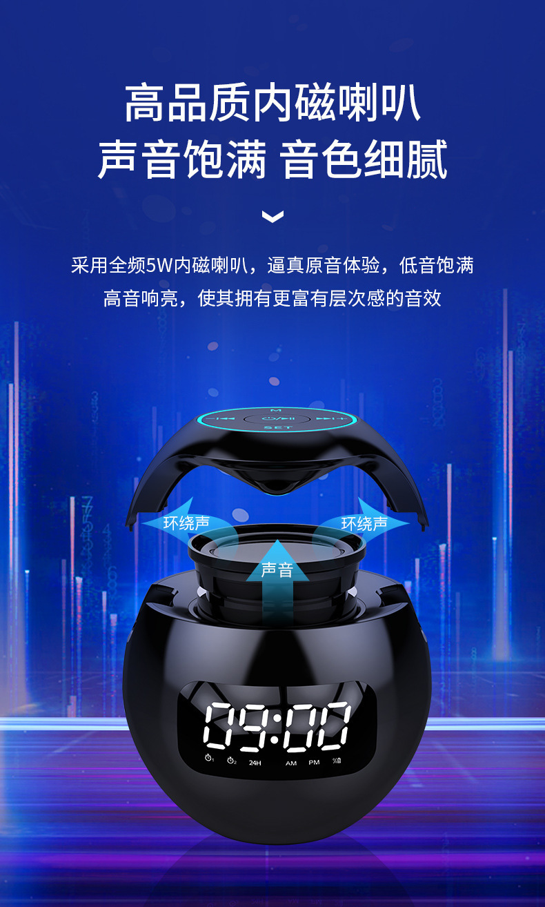 G90 국경 시계 다채로운 블루투스 스피커 미니 휴대용 홈 볼 플러그인 작은 강철 대포 컴퓨터 오디오스토어 가기