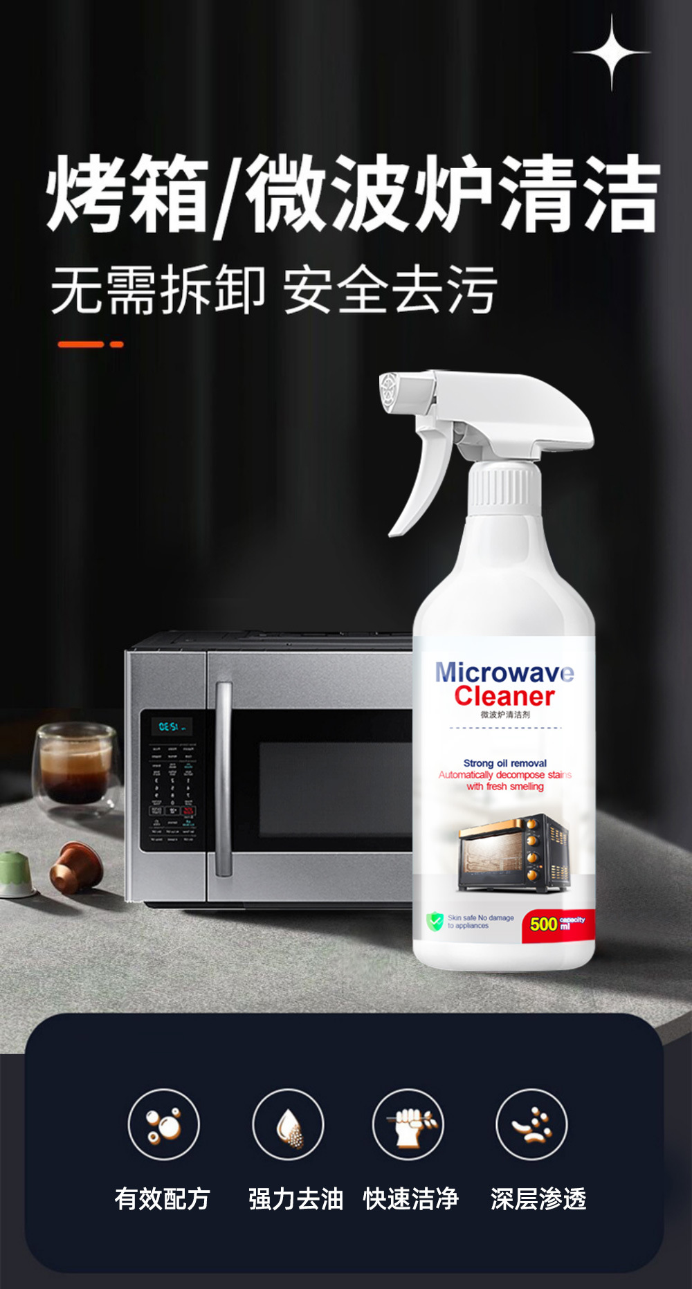 스팀 오븐 청소기 전자 레인지 내부 특수 청소 에이전트 베이킹 트레이 강한 descaling 부엌 기름 얼룩 유물을 제거