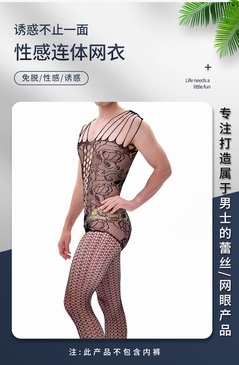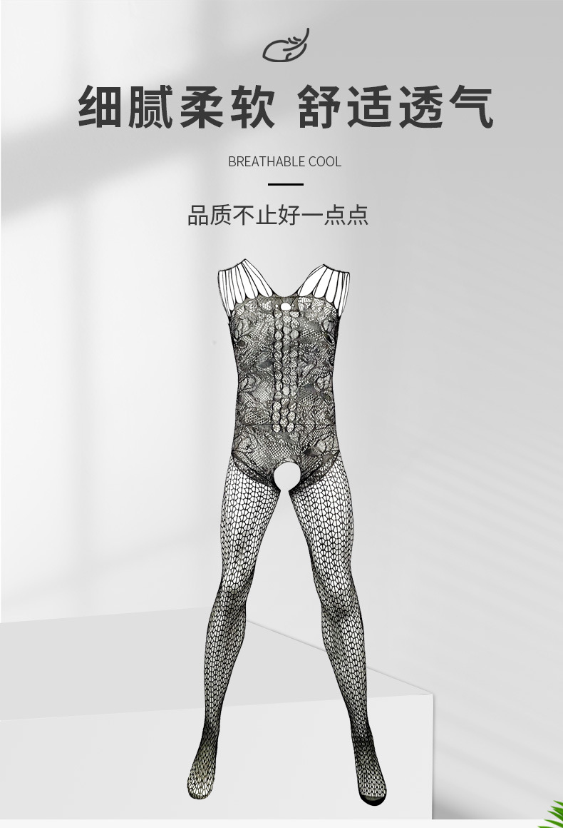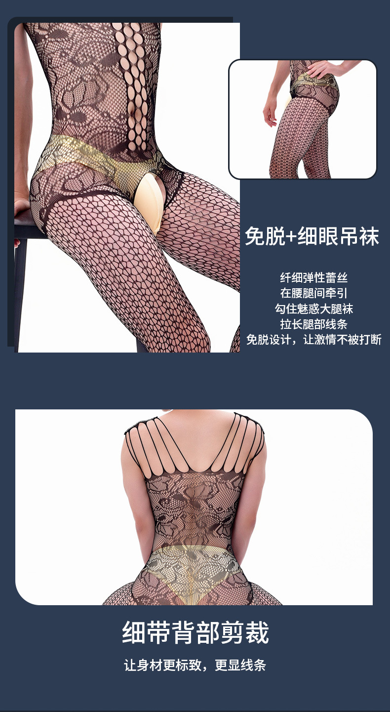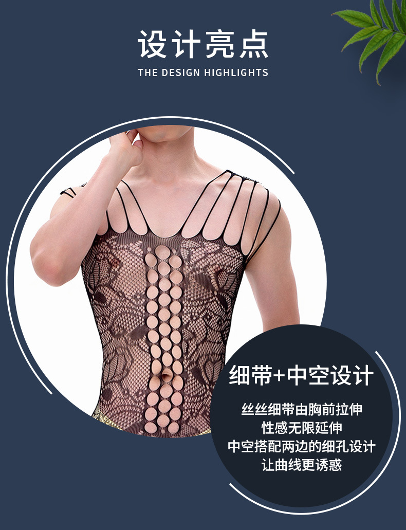 吊带连身裤蕾丝网眼性感连裤袜男士渔网丝袜连体裤无裆内衣透明内衣紧身胸衣