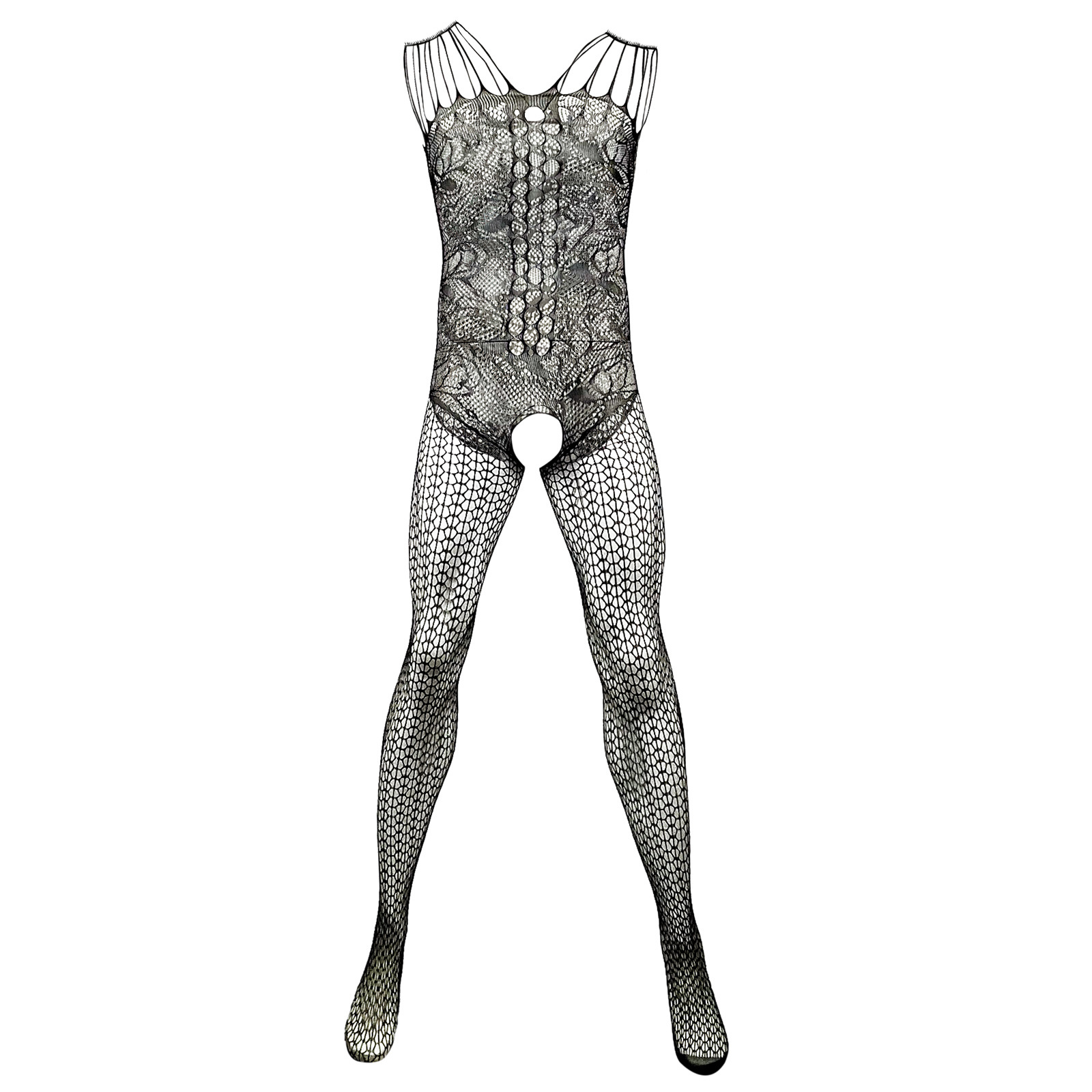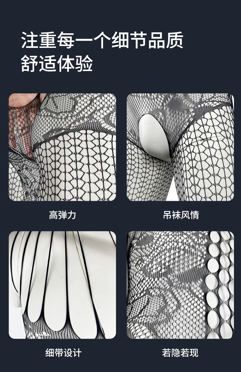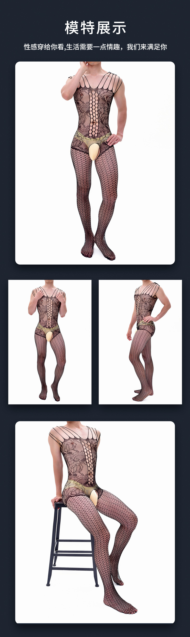 吊带连身裤蕾丝网眼性感连裤袜男士渔网丝袜连体裤无裆内衣透明内衣紧身胸衣