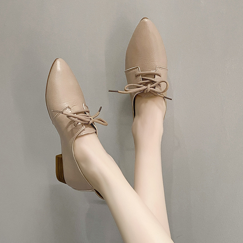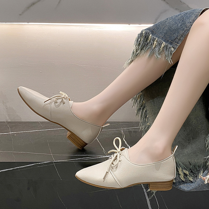 소프트 단독 편안한 콩 신발 여성 학생 인터넷 연예인 봄과 가을 낮은 발 뒤꿈치 작은 가죽 신발 슬립 온 레이스 업 영국 스타일 싱글 신발 배치