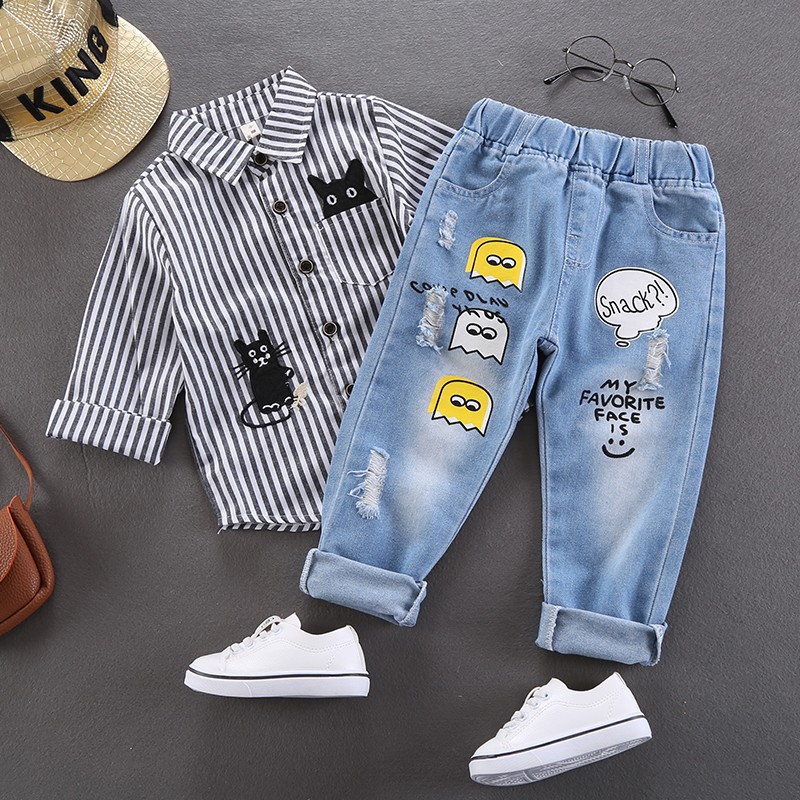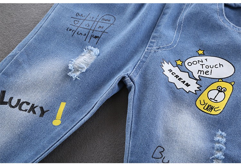 소년 청바지 봄과 가을 어린이 중소 어린이 인쇄 바지 공장 2024 캐주얼 작은 소년의 만화 바지스토어 가기