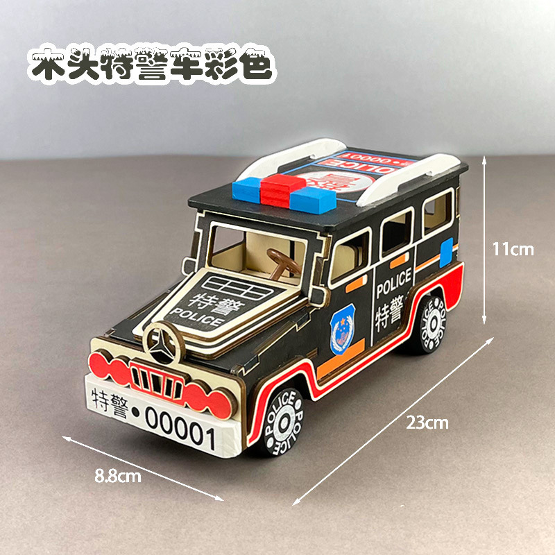나무 컬러 특수 경찰차 어린이 나무 자동차 모델 장난감 시뮬레이션 컬러 공공 보안 자동차 110 자동차 장식품 모델스토어 가기
