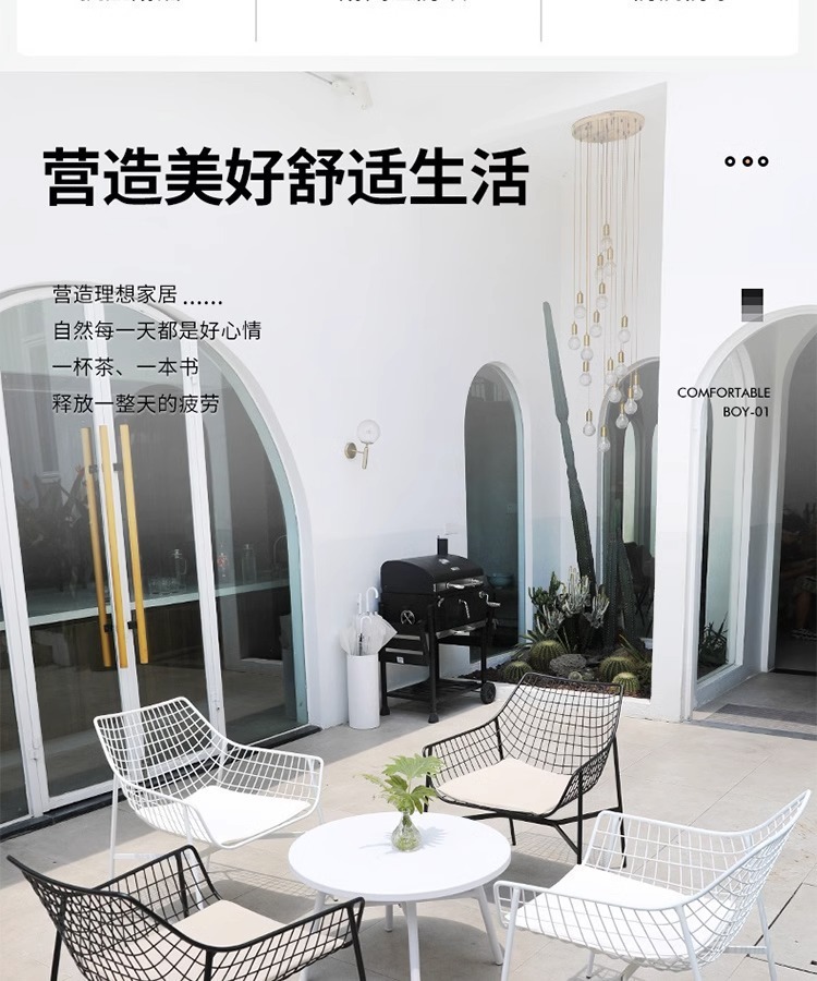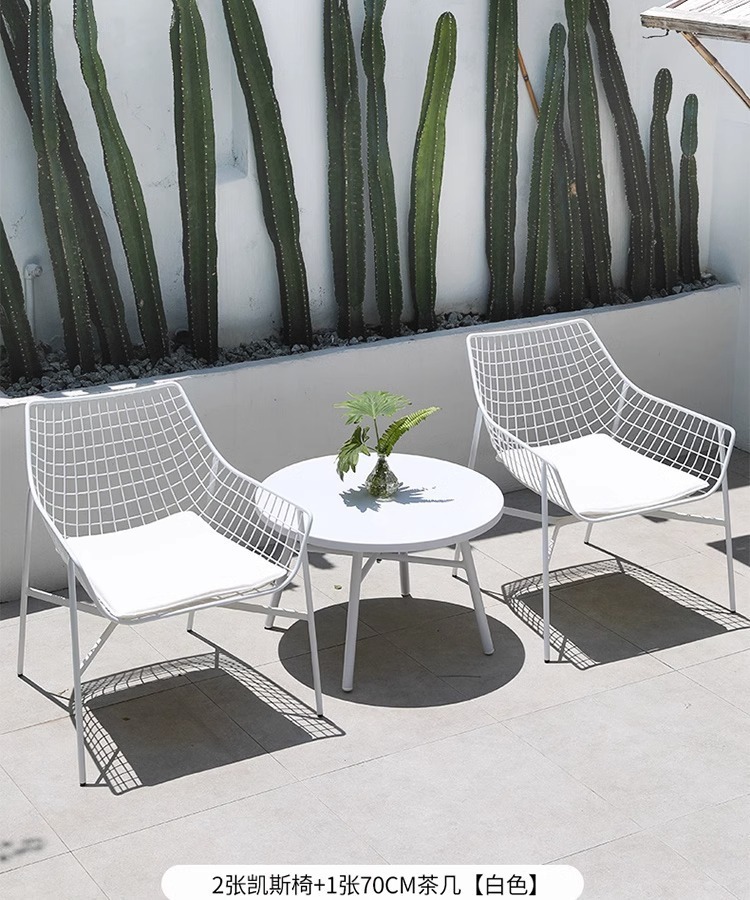 카페 레저 그리드 의자 야외 안뜰 개방형 철 의자 3 피스 호텔 야외 발코니 테이블 및 의자스토어 가기