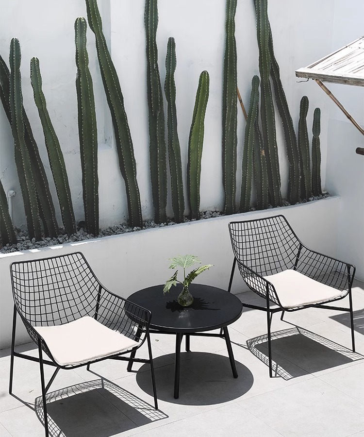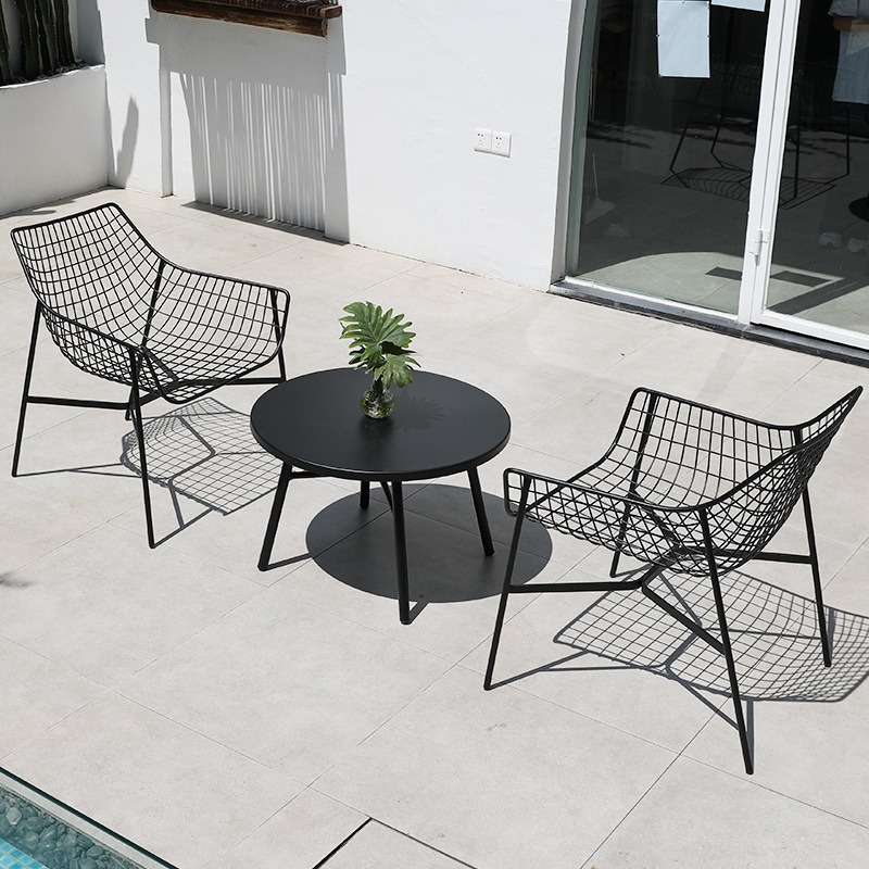 카페 레저 그리드 의자 야외 안뜰 개방형 철 의자 3 피스 호텔 야외 발코니 테이블 및 의자