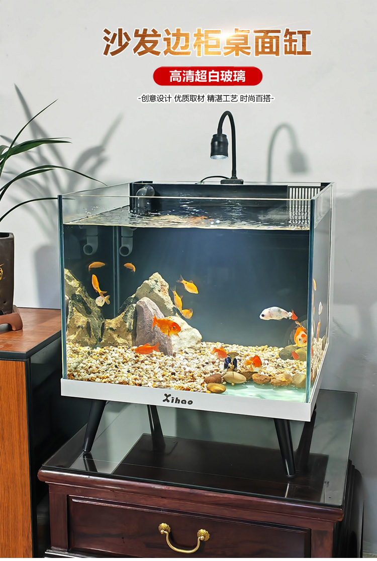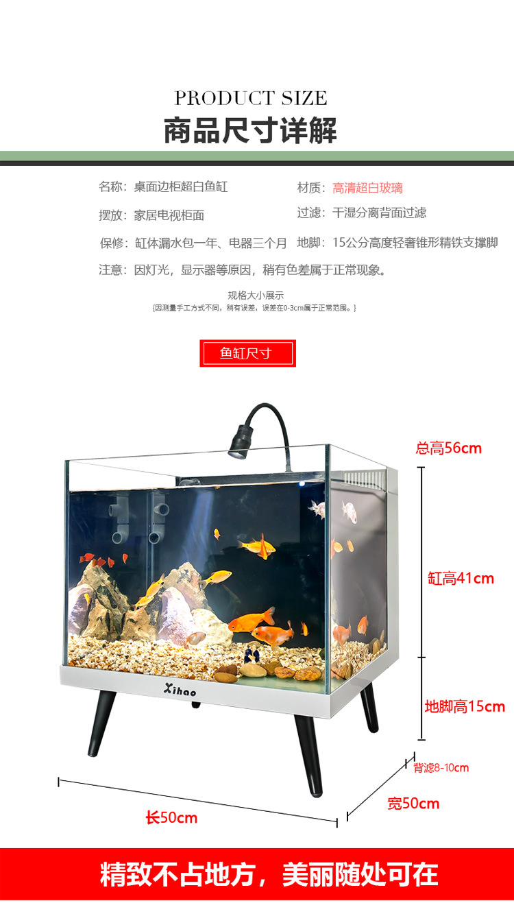 유리 수조 데스크탑 사이드 캐비닛 수조 거실 물 교체 없음 소형 수족관 생태 조경 수초 탱크 금붕어 탱크스토어 가기