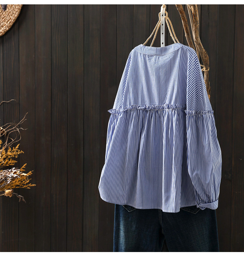 재고 있음 좋은 품질 2024 신상 여성 셔츠 일본 및 한국 스타일 긴 소매 러플 루즈핏 슬림핏 순면 셔츠 상의스토어 가기