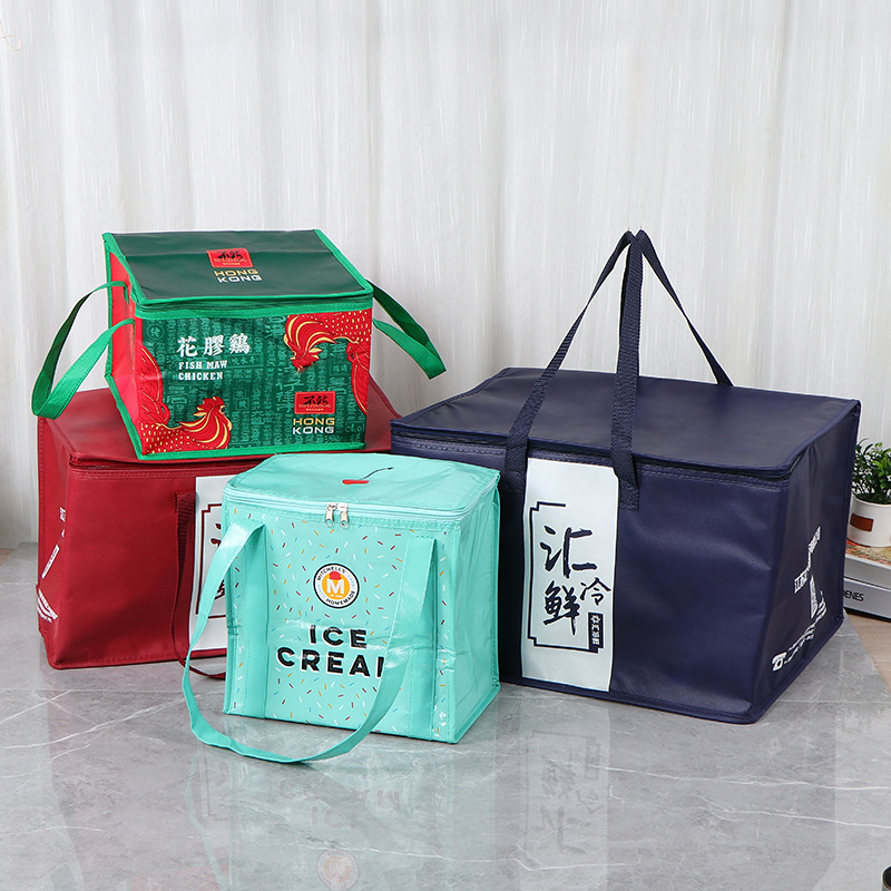 맞춤형 로고가 있는 알루미늄 호일 테이크아웃 단열 가방 바베큐 바베큐 털게 해산물 방수 대용량 테이크아웃 토트백스토어 가기