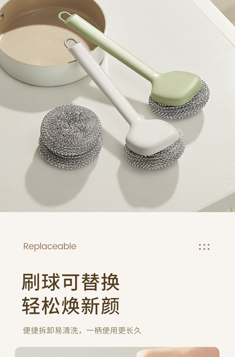 청소 볼 브러시 가정용 긴 손잡이 스테인레스 스틸 포트 브러시 스틸 와이어 볼 주방 식기 세척 브러시 이동식 브러시 포트 브러시 아티팩트스토어 가기