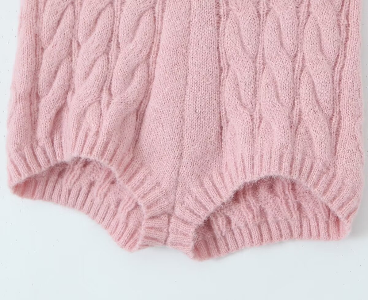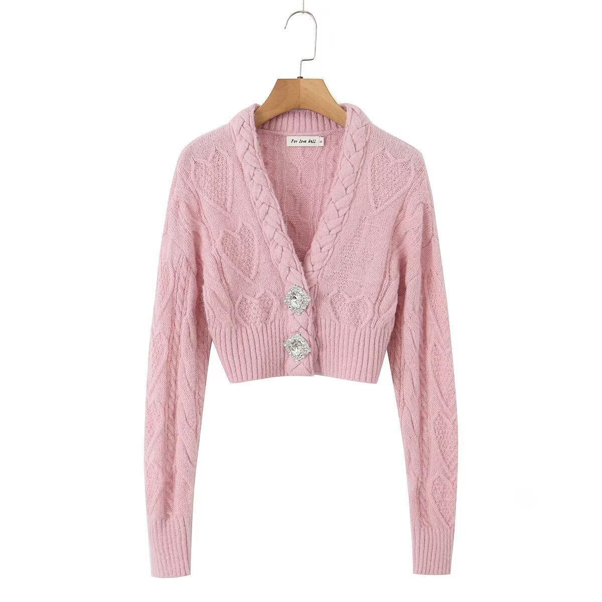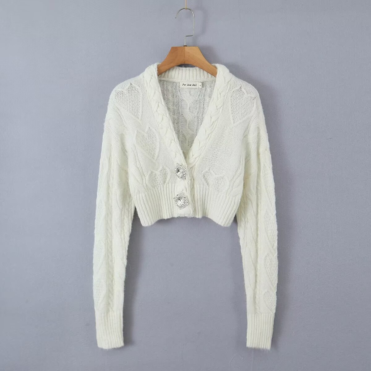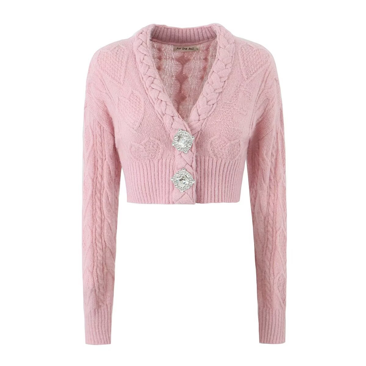 유럽풍 니트 세트 여성용 가을 순수하고 달콤한 스타일의 큐빅 장식 슬림핏 브이넥 숏 스웨터+니트 슬립+반바지