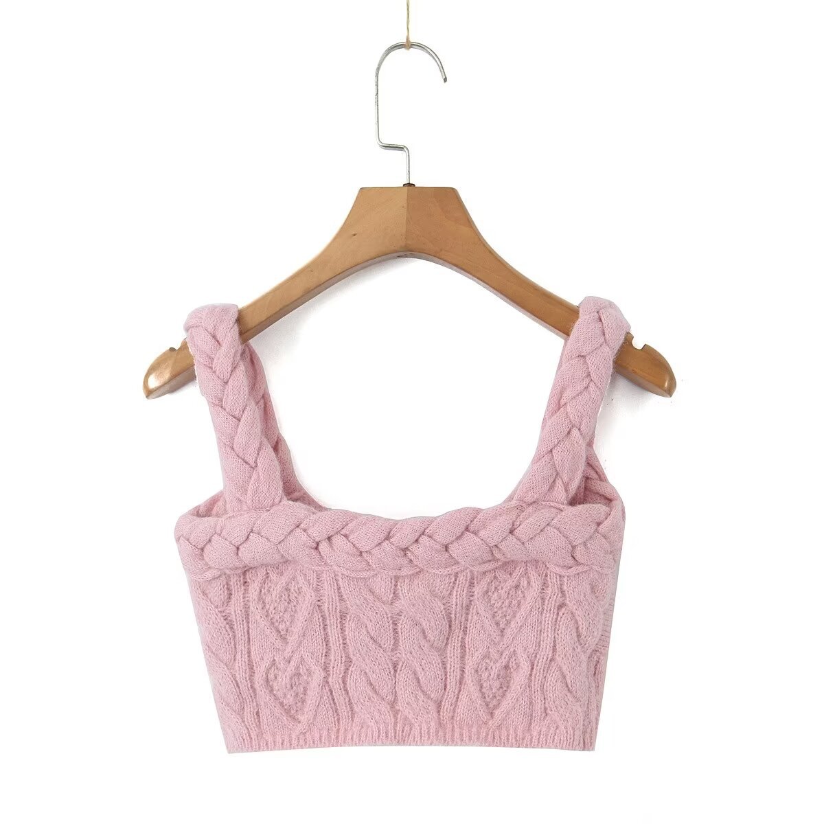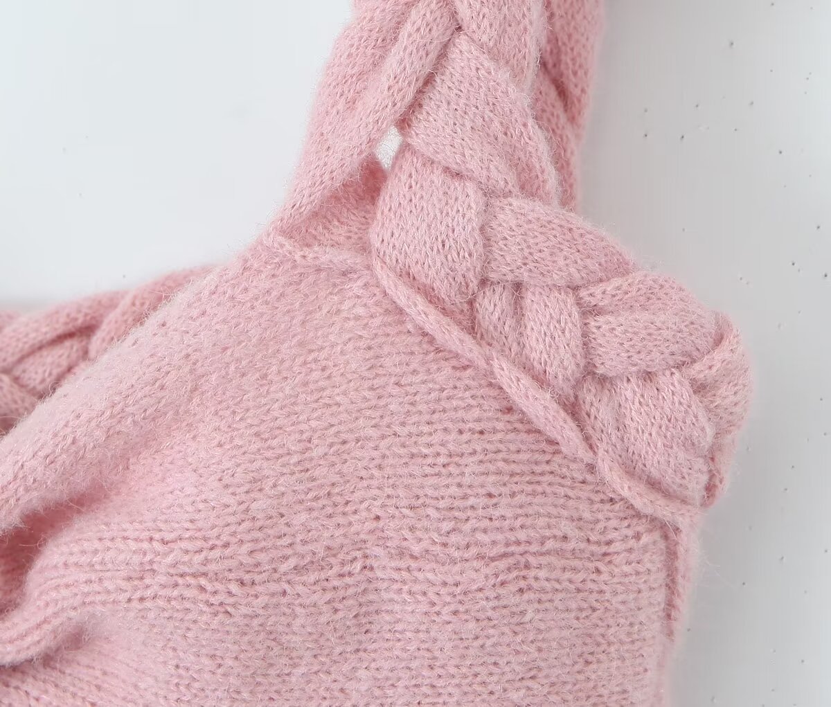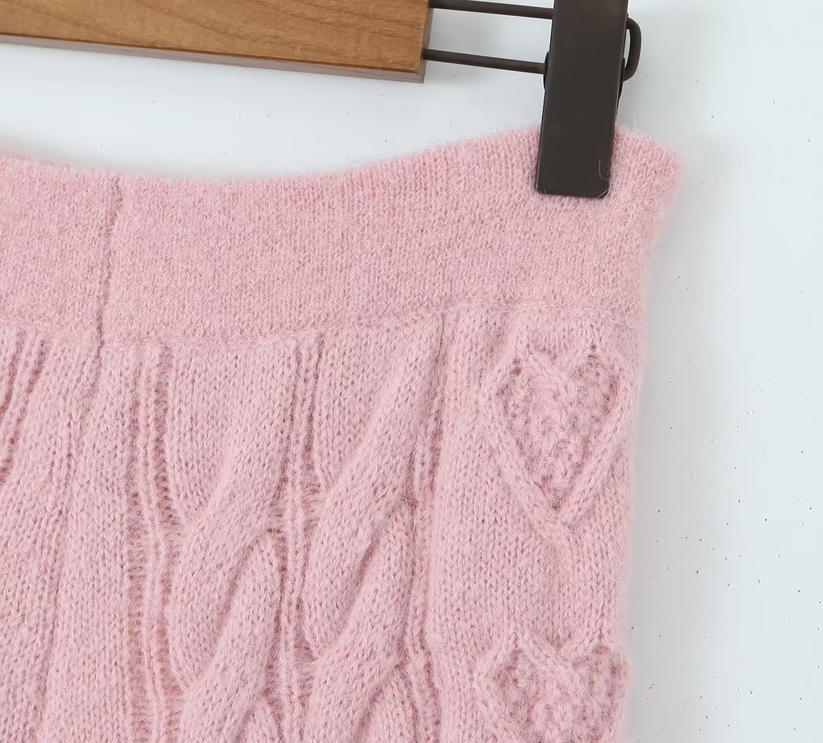 유럽풍 니트 세트 여성용 가을 순수하고 달콤한 스타일의 큐빅 장식 슬림핏 브이넥 숏 스웨터+니트 슬립+반바지