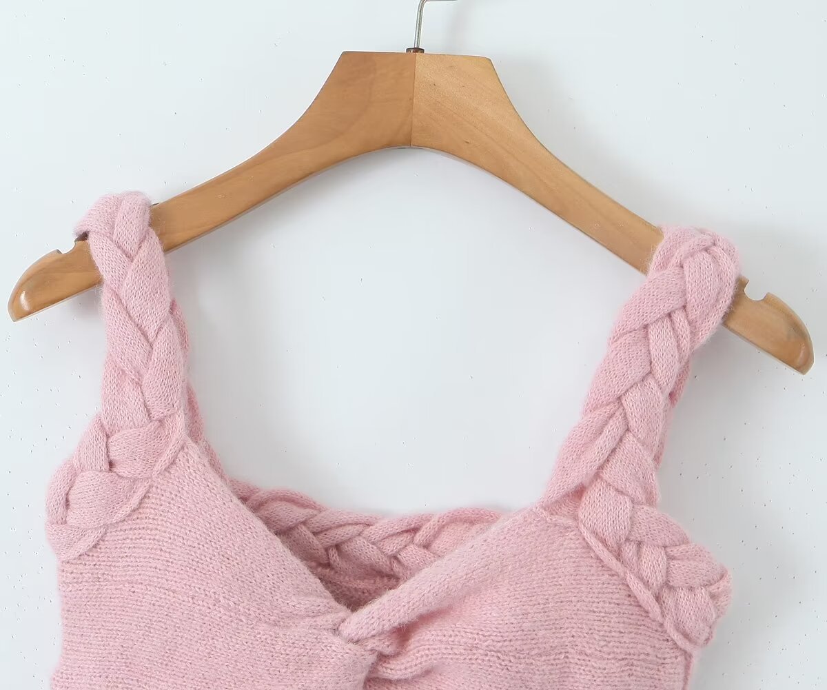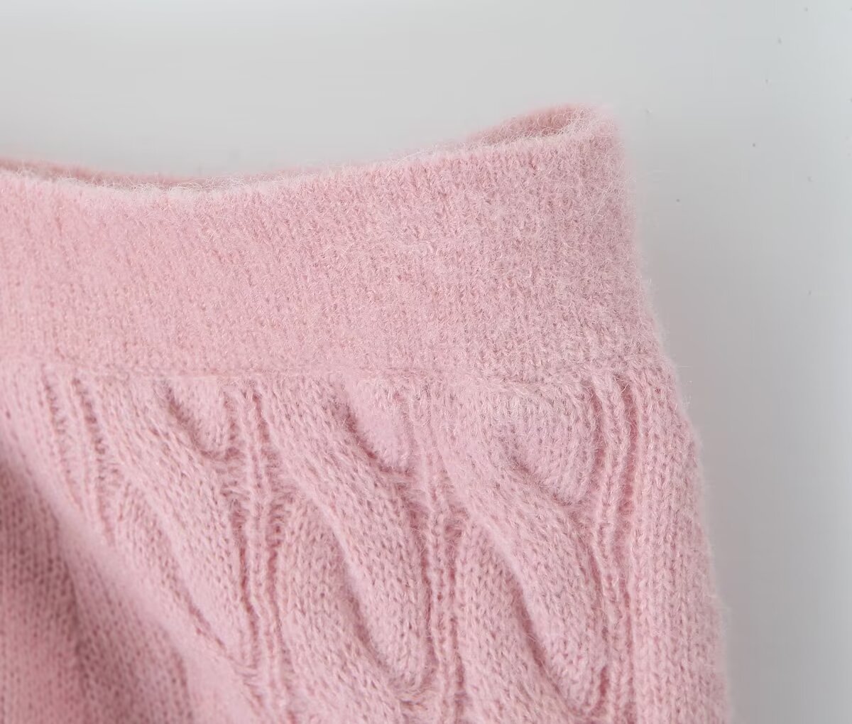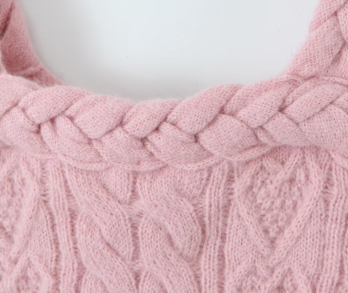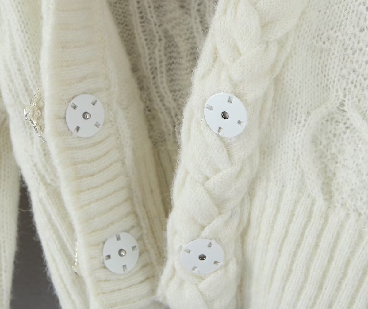 유럽풍 니트 세트 여성용 가을 순수하고 달콤한 스타일의 큐빅 장식 슬림핏 브이넥 숏 스웨터+니트 슬립+반바지
