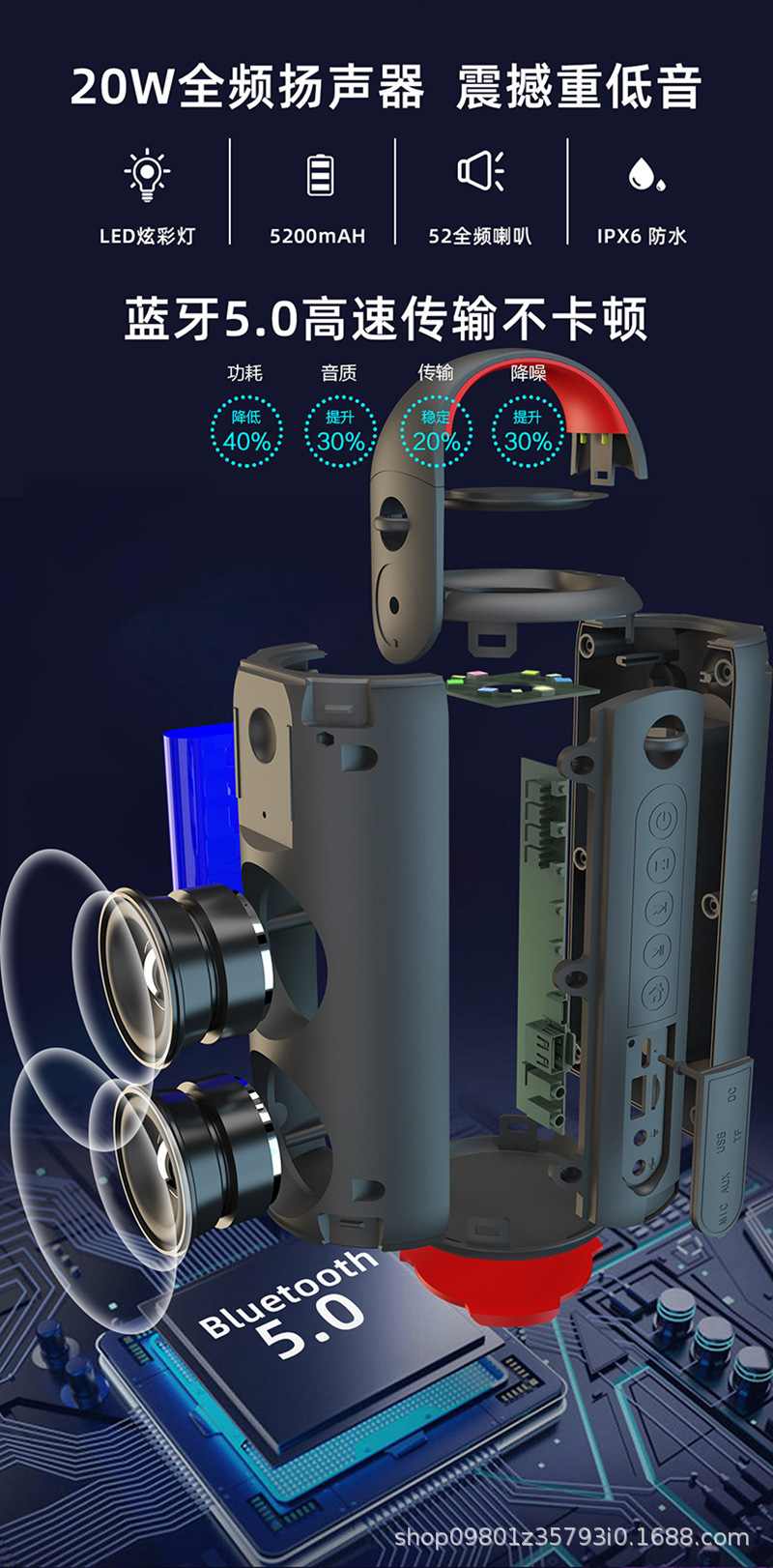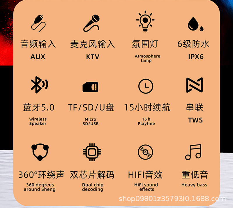 뮤직 워시신 무선 블루투스 스피커 서브우퍼 야외 방수 가정용 KTV 대용량 카드 삽입형 휴대용 스피커스토어 가기