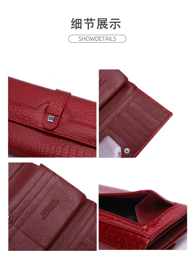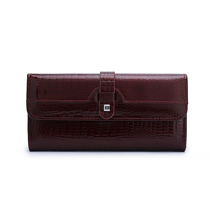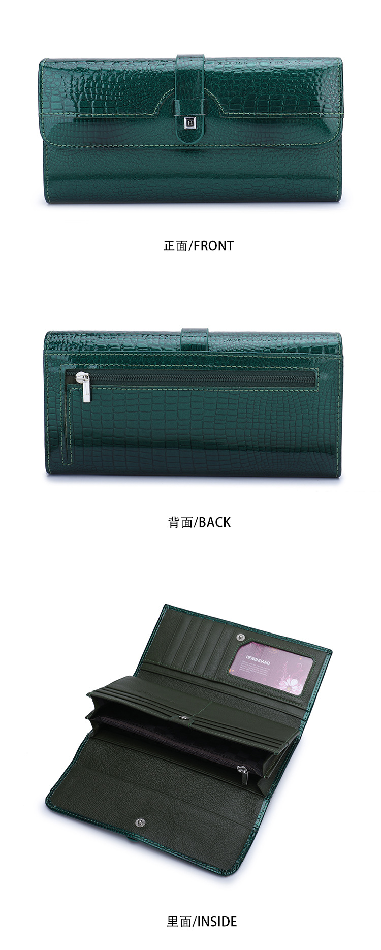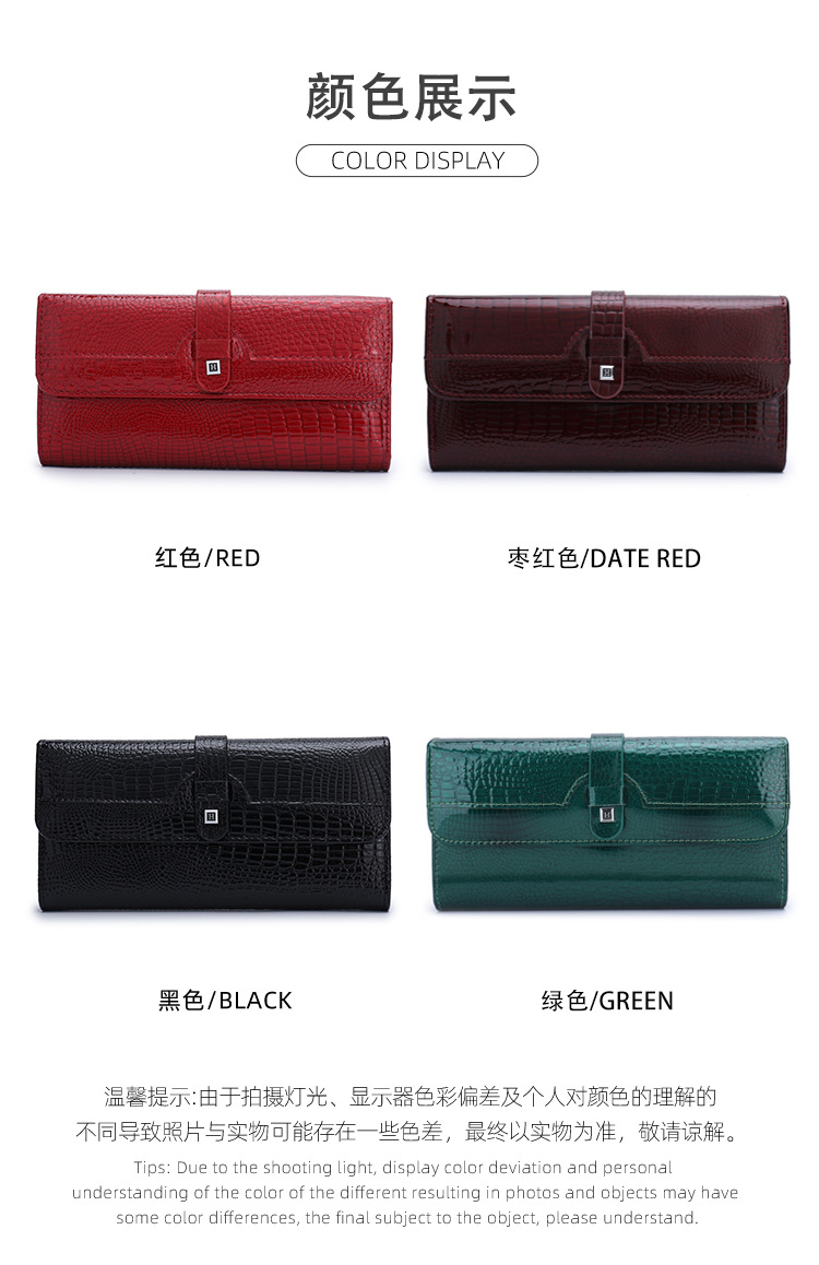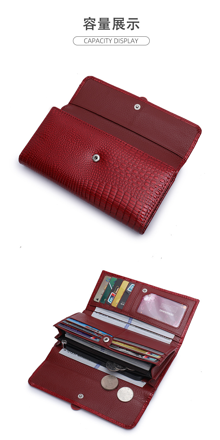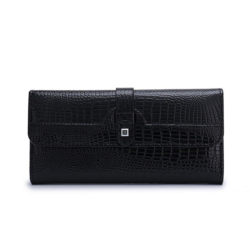 유럽과 미국의 정품 가죽 지갑 여성 스냅 특허 가죽 악어 패턴 멀티 카드 지갑 휴대 전화 가방 클러치 백 맞춤형 도매스토어 가기