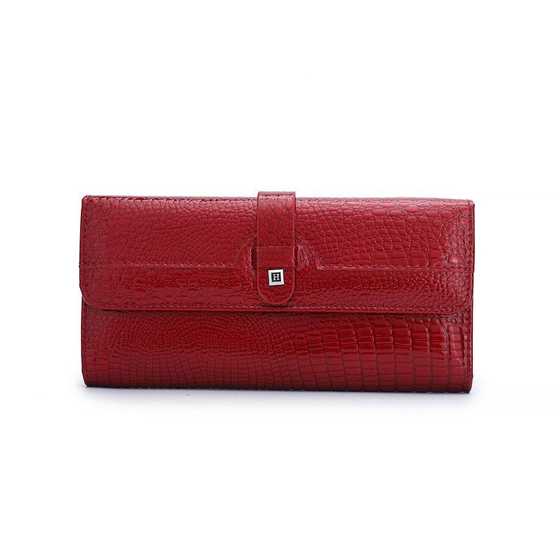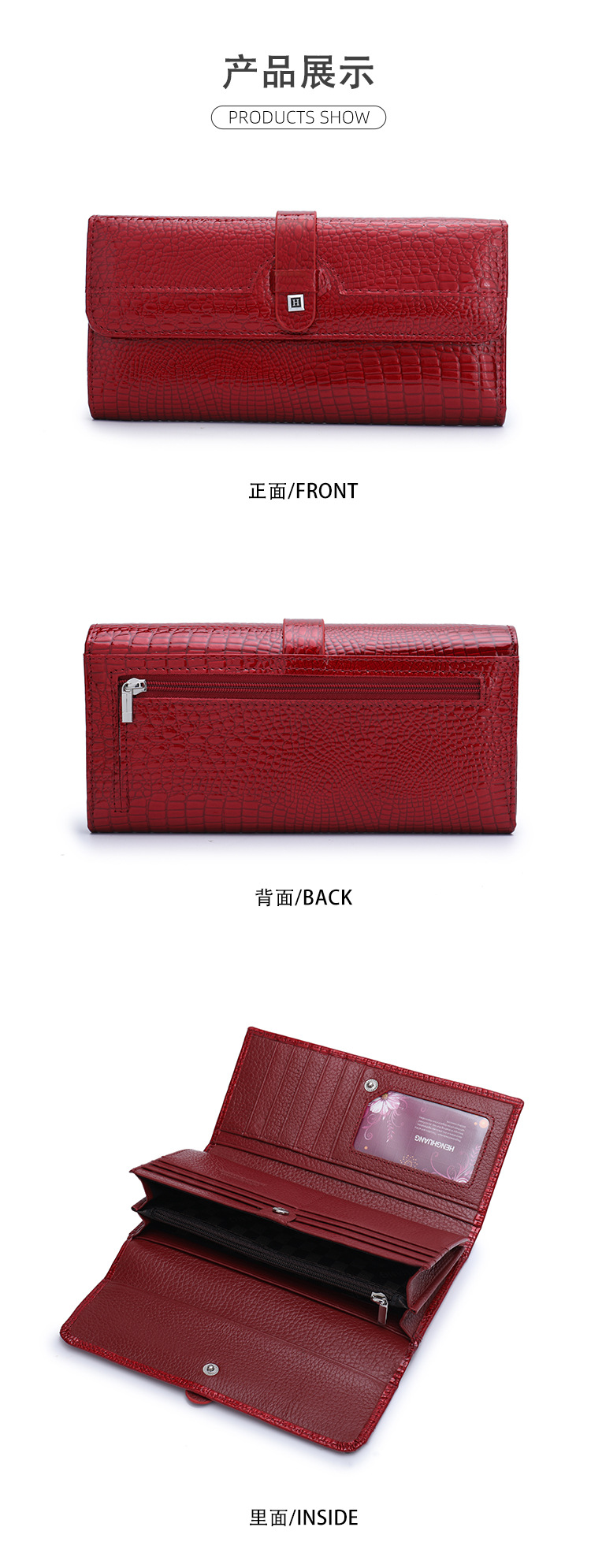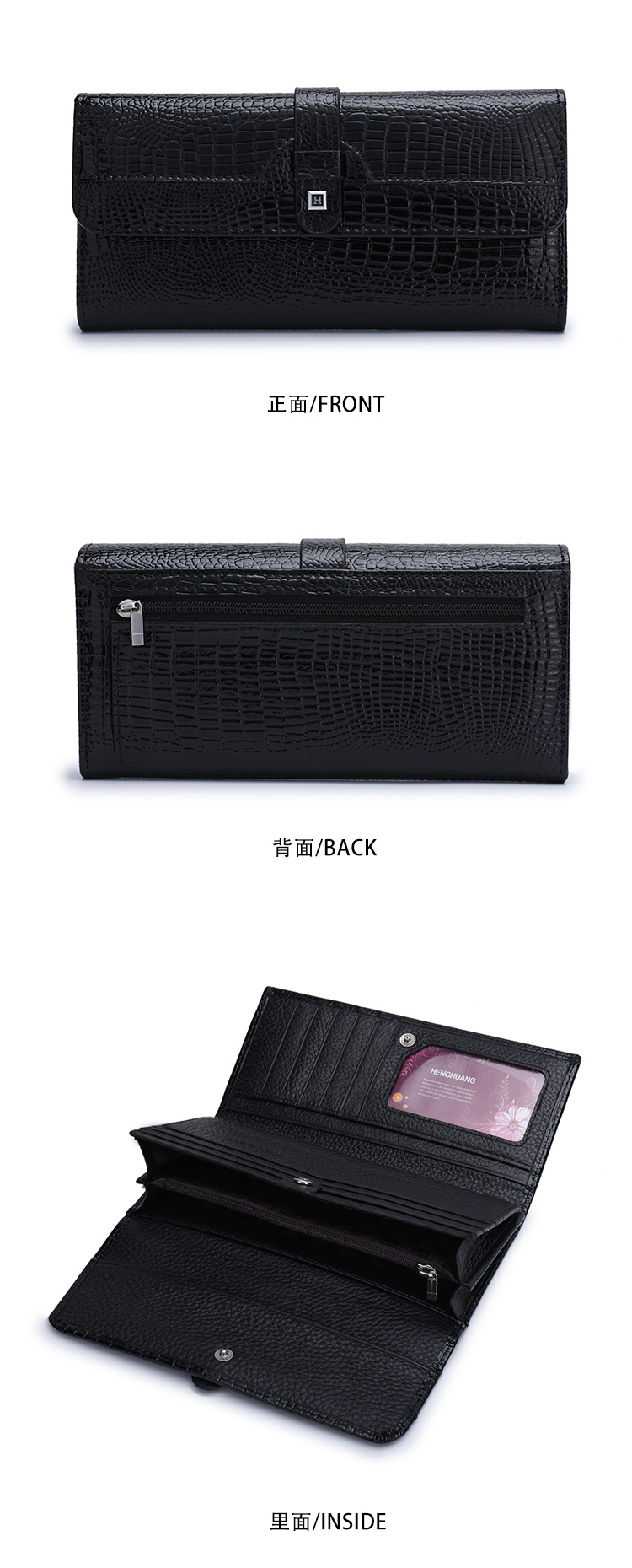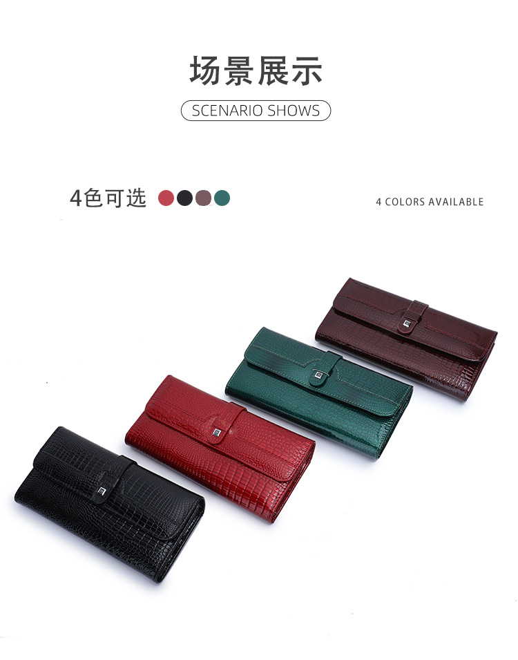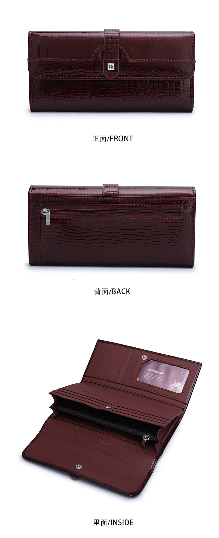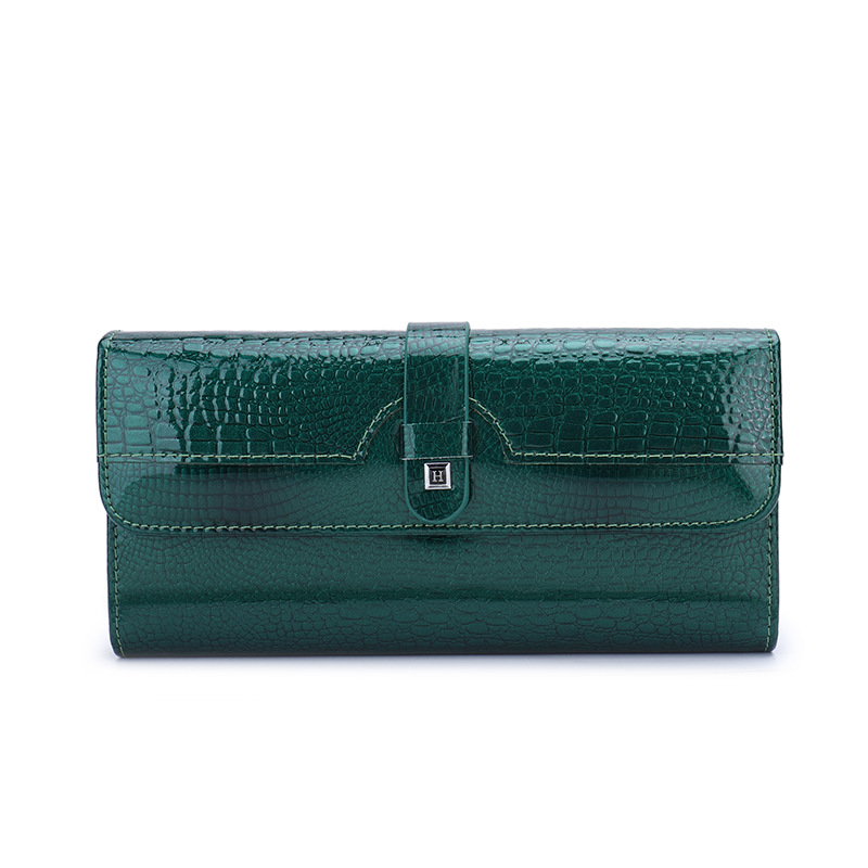 유럽과 미국의 정품 가죽 지갑 여성 스냅 특허 가죽 악어 패턴 멀티 카드 지갑 휴대 전화 가방 클러치 백 맞춤형 도매스토어 가기