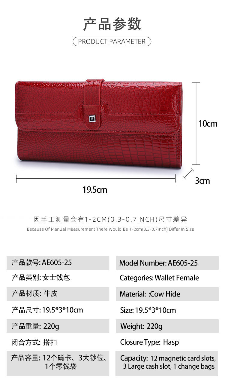 유럽과 미국의 정품 가죽 지갑 여성 스냅 특허 가죽 악어 패턴 멀티 카드 지갑 휴대 전화 가방 클러치 백 맞춤형 도매