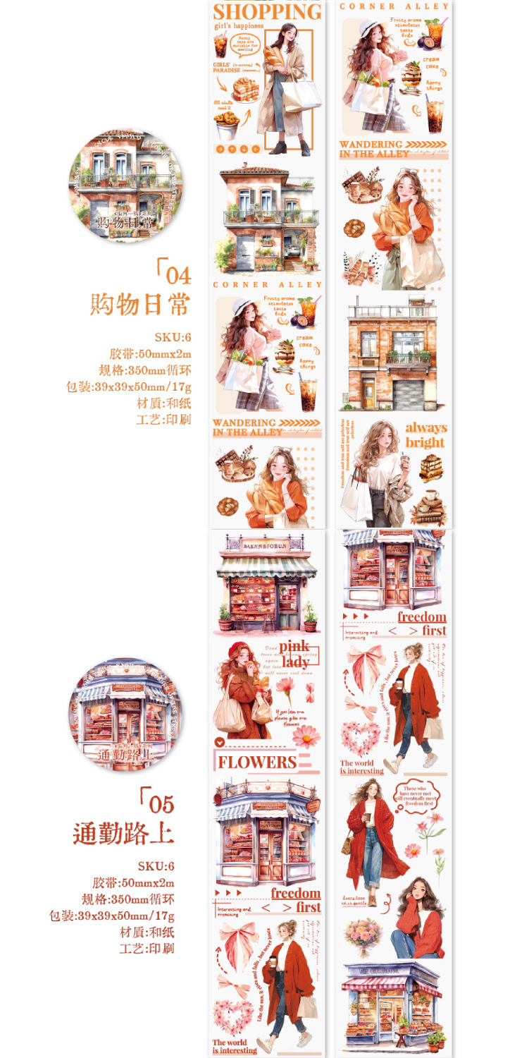 문학과 예술적 손 계정 소재 장식 콜라주 스티커 DIY6 문자의 연지와 종이 테이프 거리 코너 시리즈