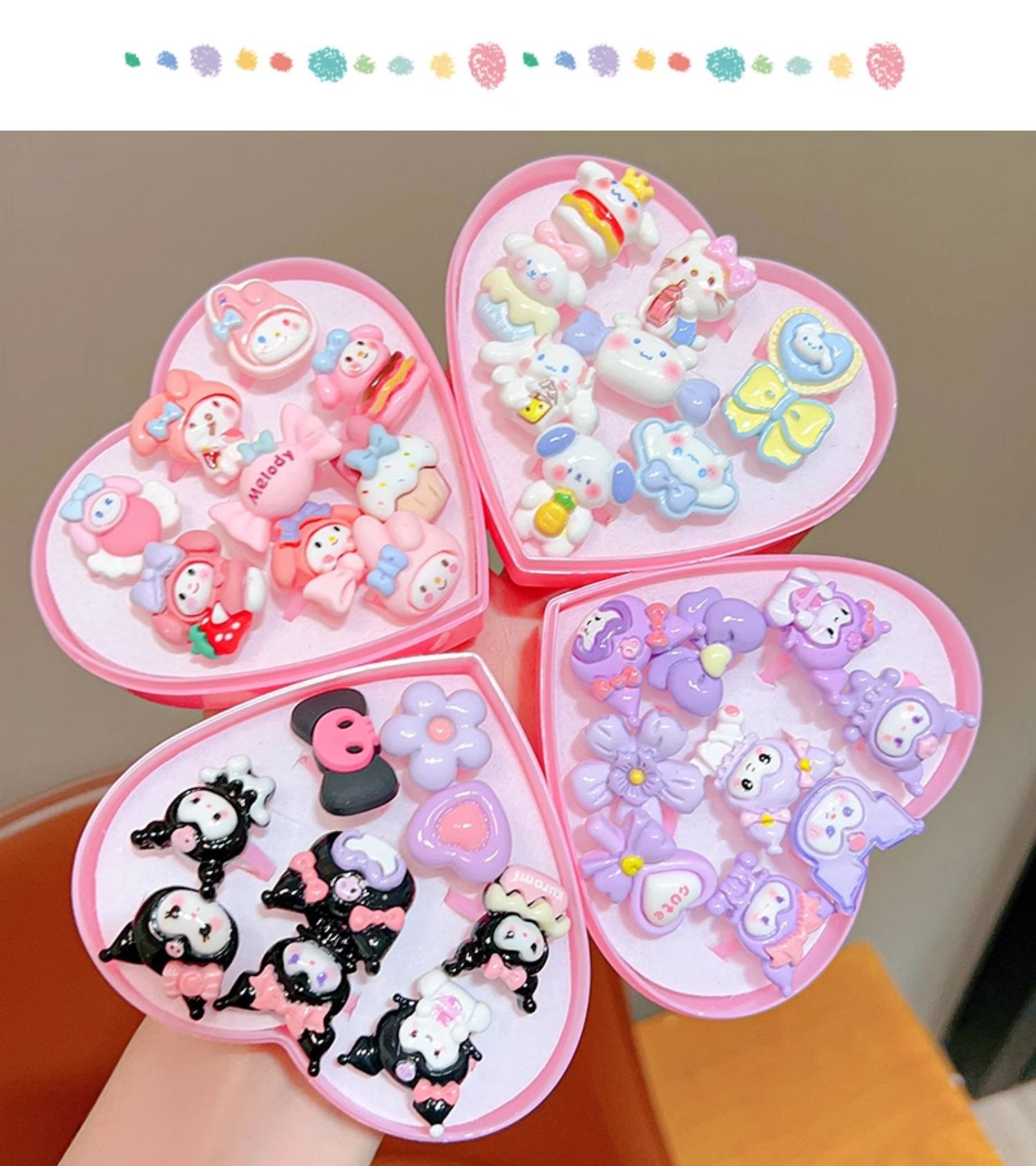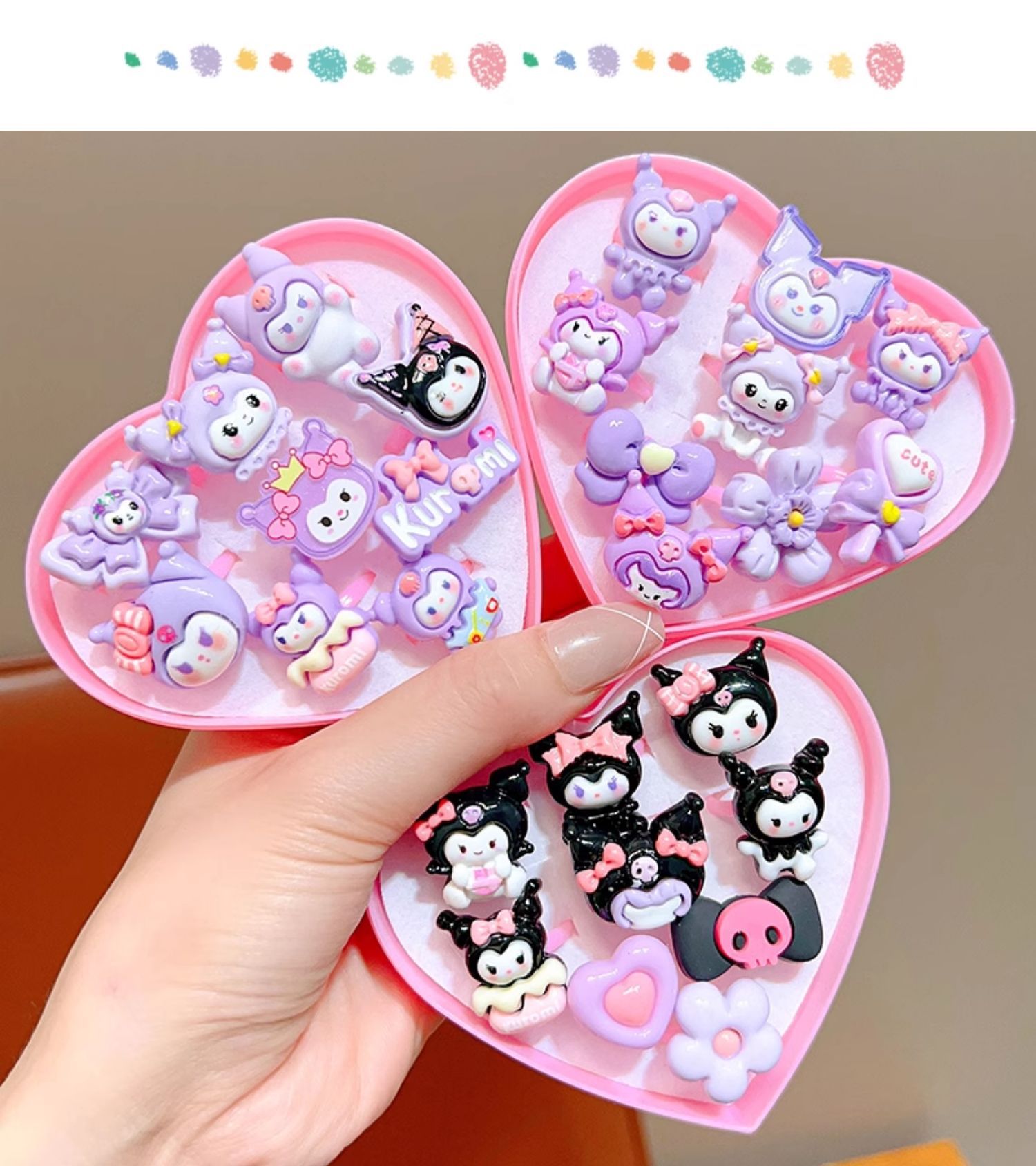 Kulomi 어린이 반지 소녀 산리오 소녀 반지 귀여운 작은 반지 만화 공주 장난감 보석 상자스토어 가기