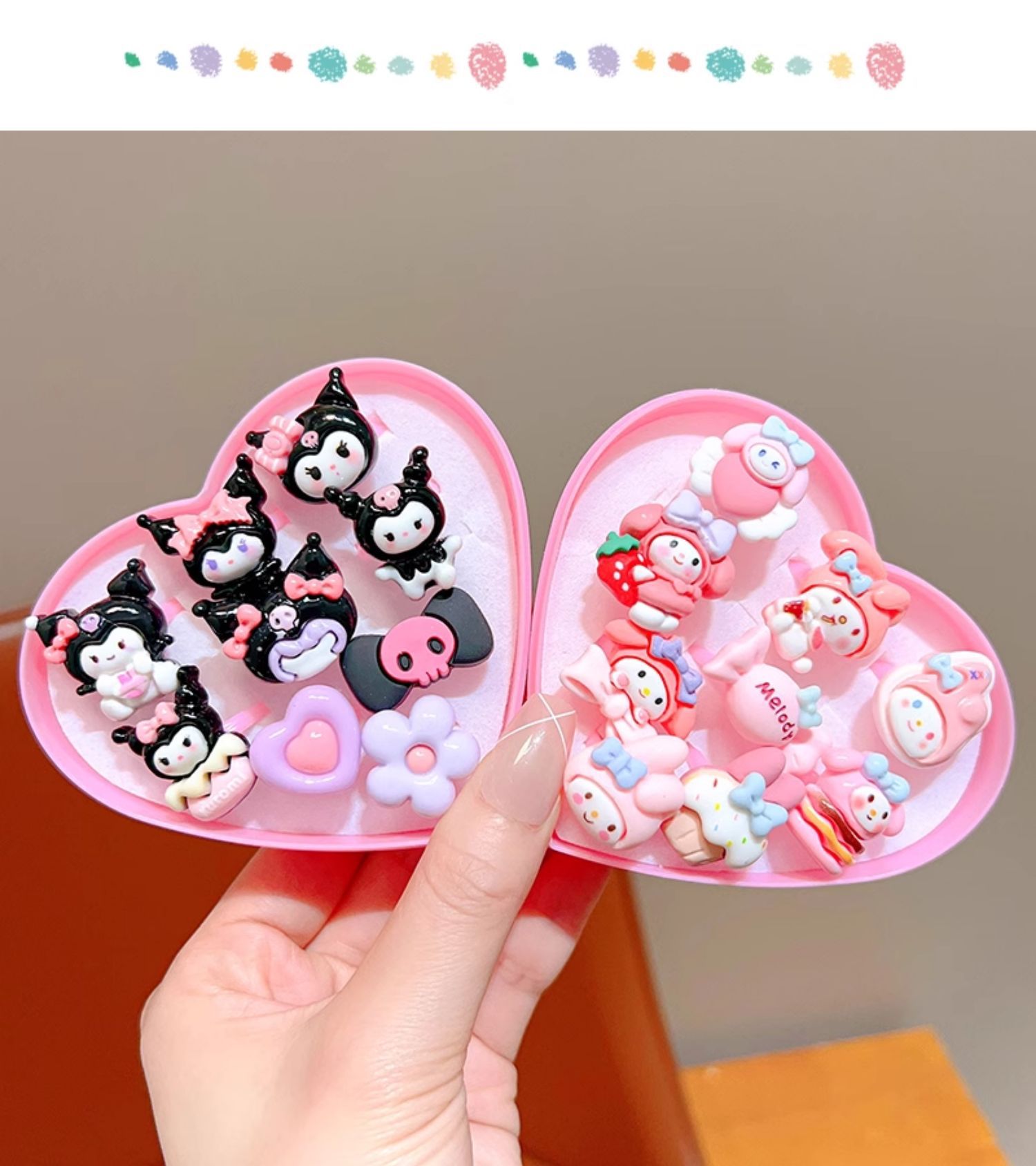 Kulomi 어린이 반지 소녀 산리오 소녀 반지 귀여운 작은 반지 만화 공주 장난감 보석 상자