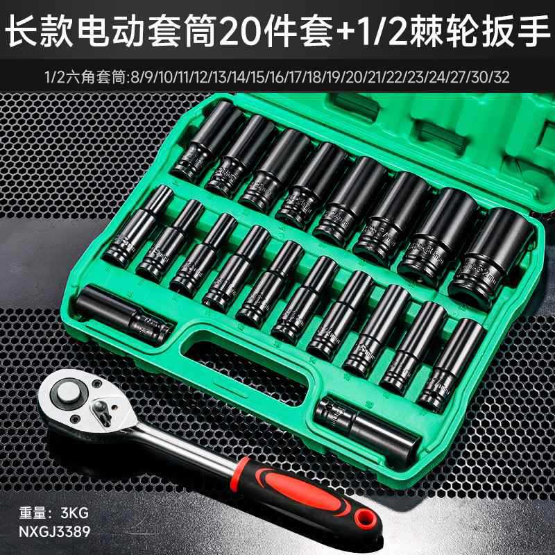 전기 렌치 소켓 큰, 중간 및 작은 비행 육각형 공기 대포 소켓 헤드 조합 세트 도구의 전체 세트