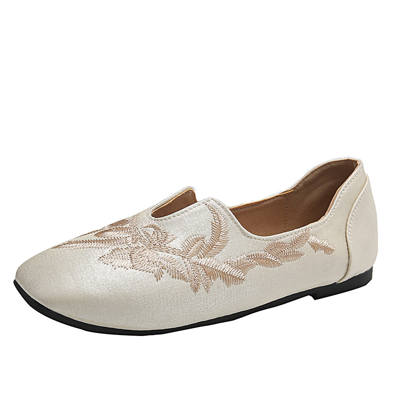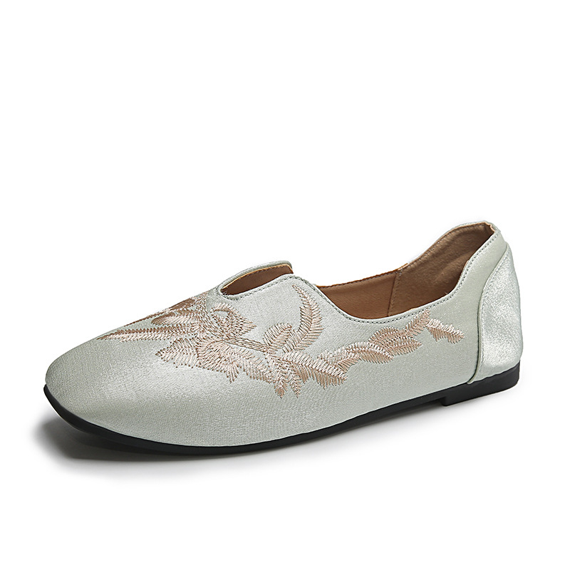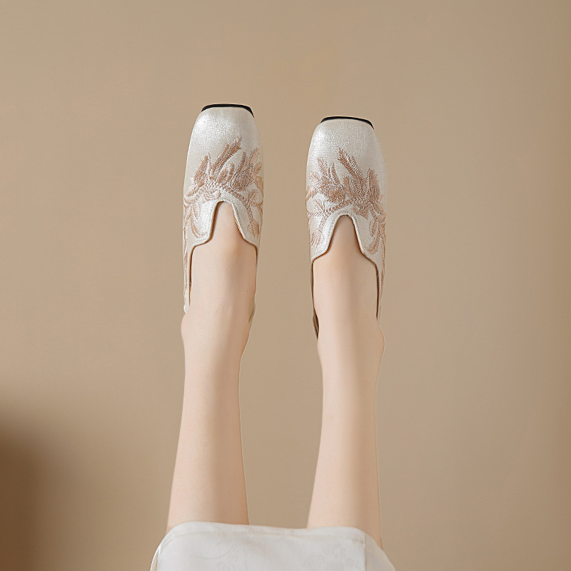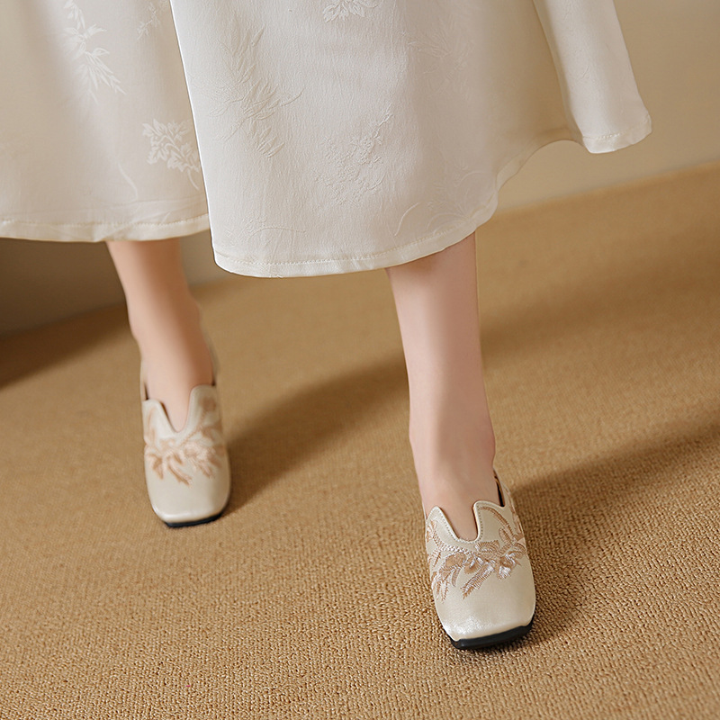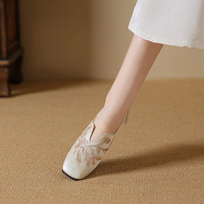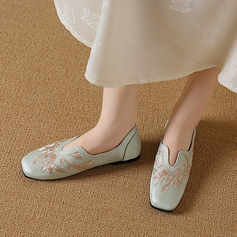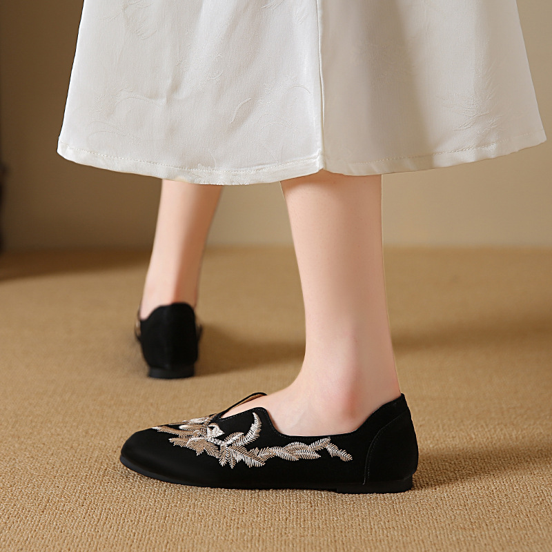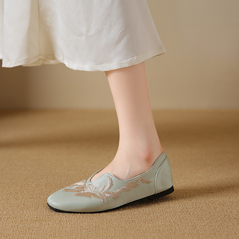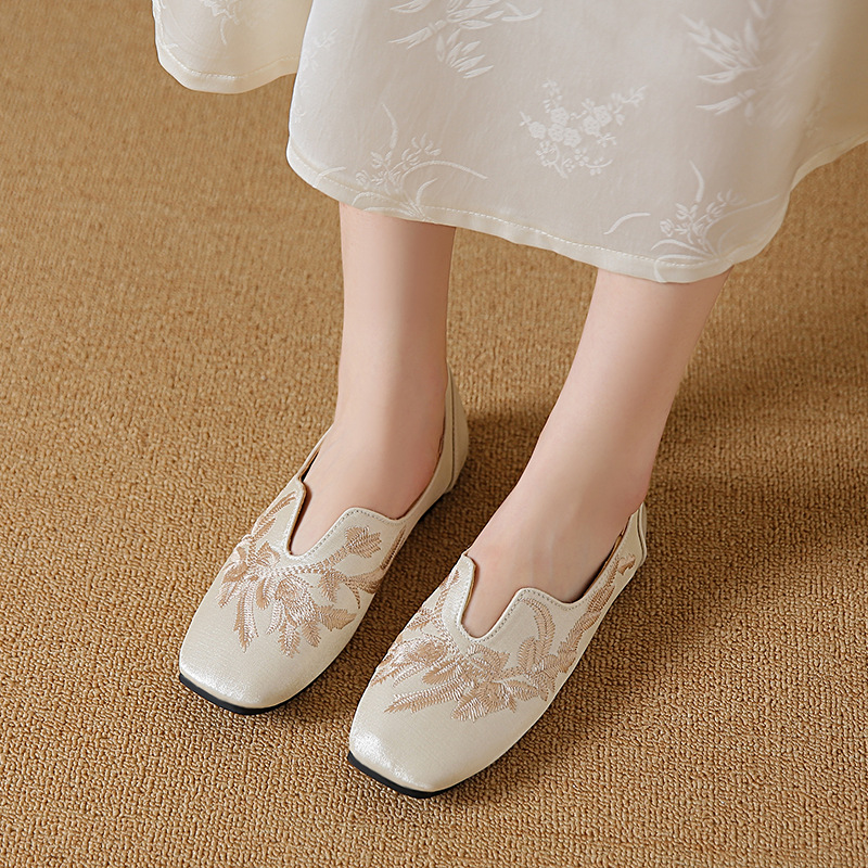 새로운 중국 스타일 자수 플랫 신발 여성의 봄과 여름 새로운 레트로 스타일 부드러운 밑창 한푸 자수 신발 2024 년