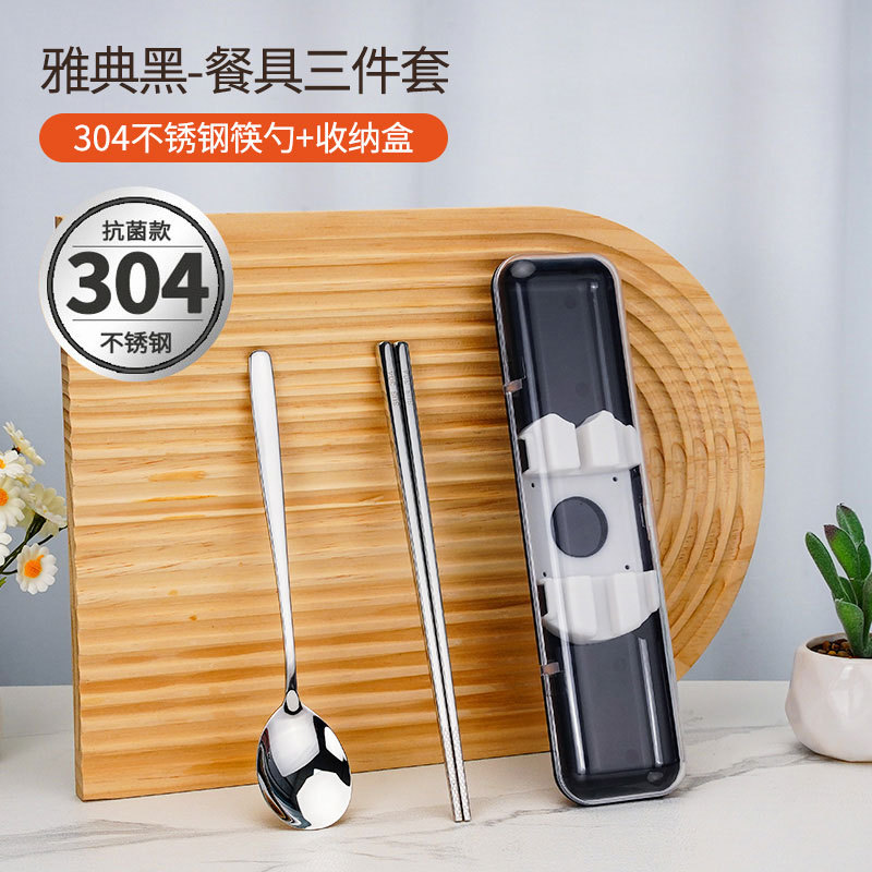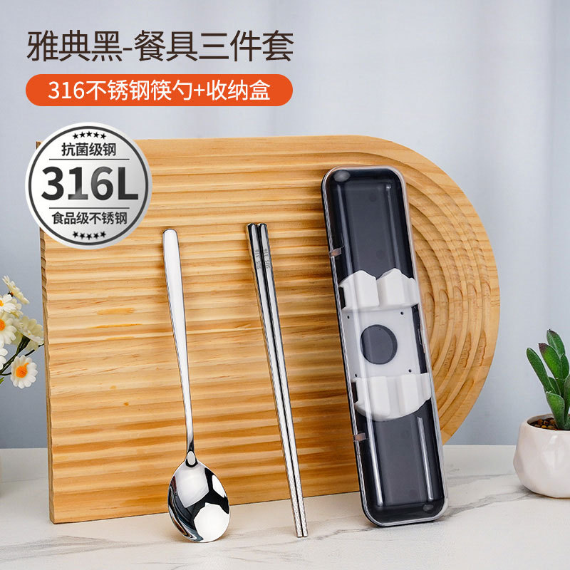 • [316L 스테인레스 스틸 | 항균 99.9%] 아테네 검은 젓가락 숟가락 세트 3