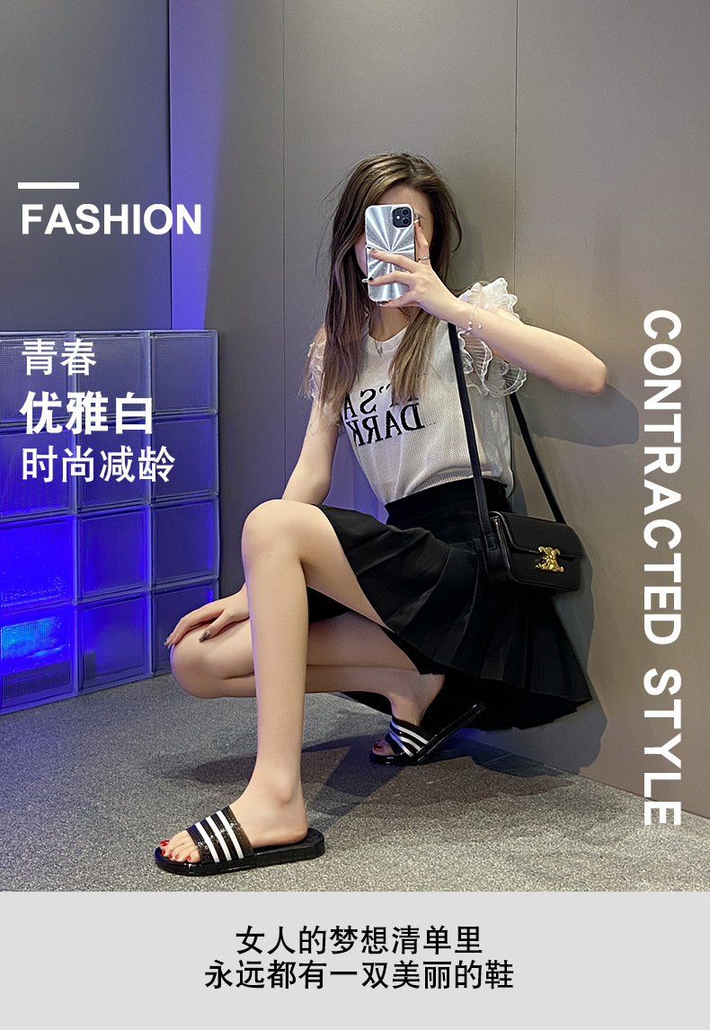 크리스탈 슬리퍼 여성용 홈 플랫 마모 방지 스트라이프 학생 기숙사 실내 목욕 홈 멋진 신발스토어 가기