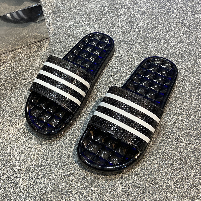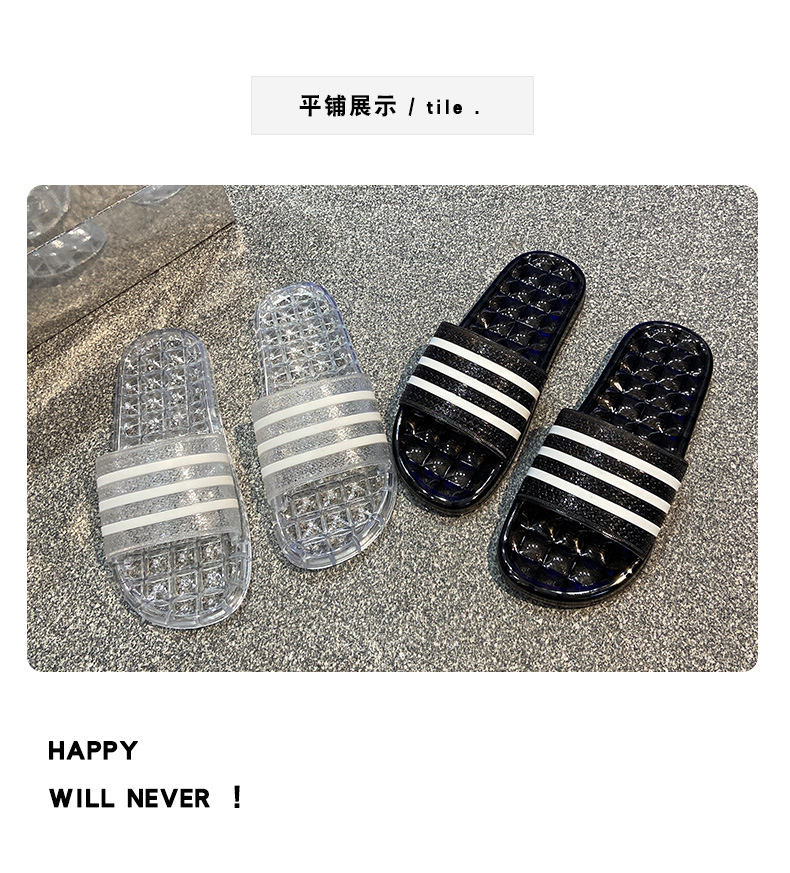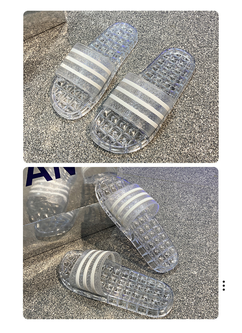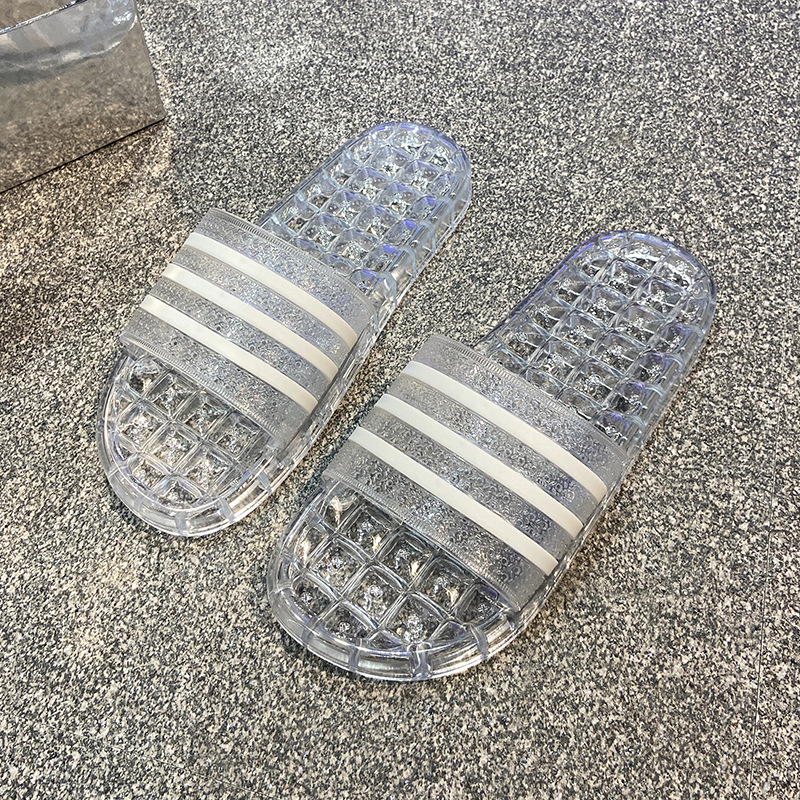 크리스탈 슬리퍼 여성용 홈 플랫 마모 방지 스트라이프 학생 기숙사 실내 목욕 홈 멋진 신발