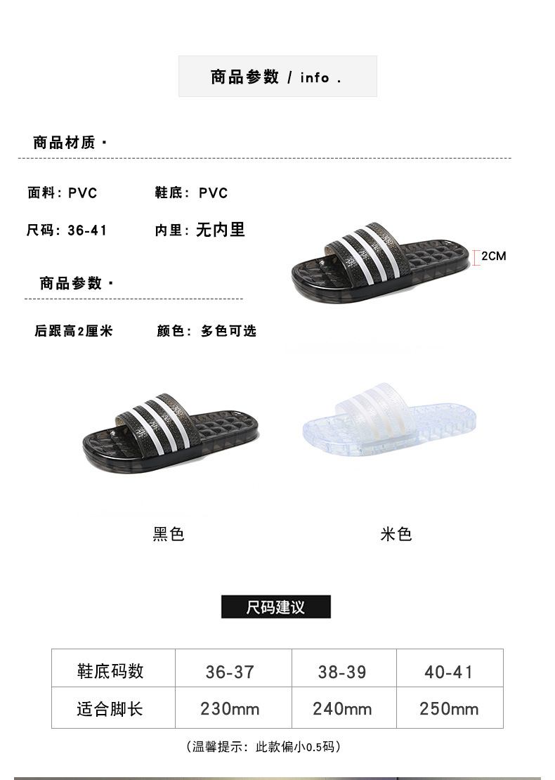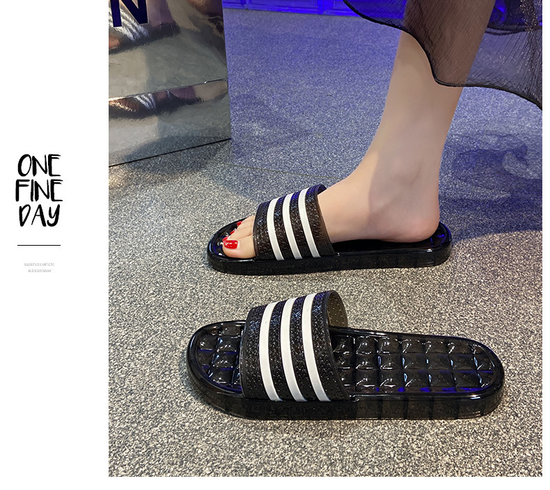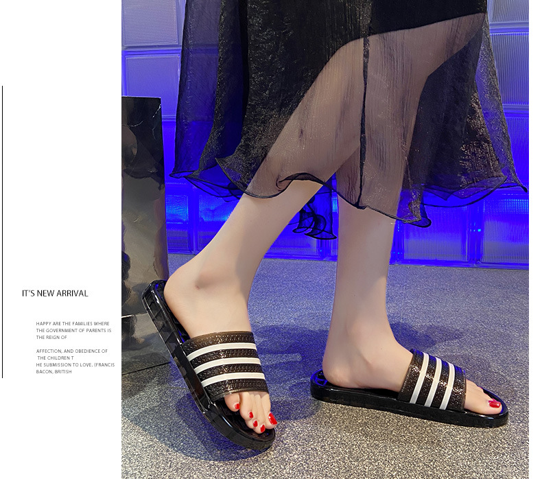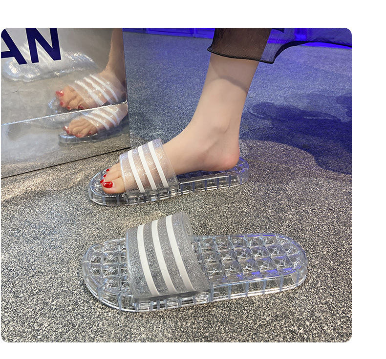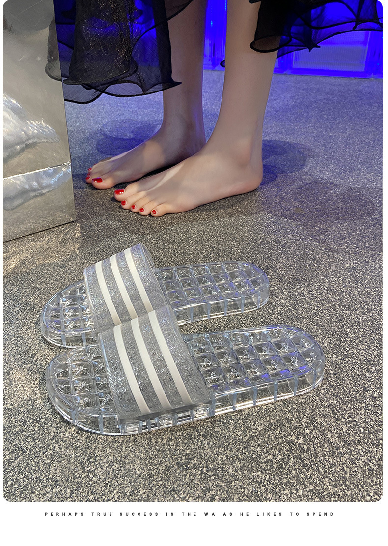 크리스탈 슬리퍼 여성용 홈 플랫 마모 방지 스트라이프 학생 기숙사 실내 목욕 홈 멋진 신발