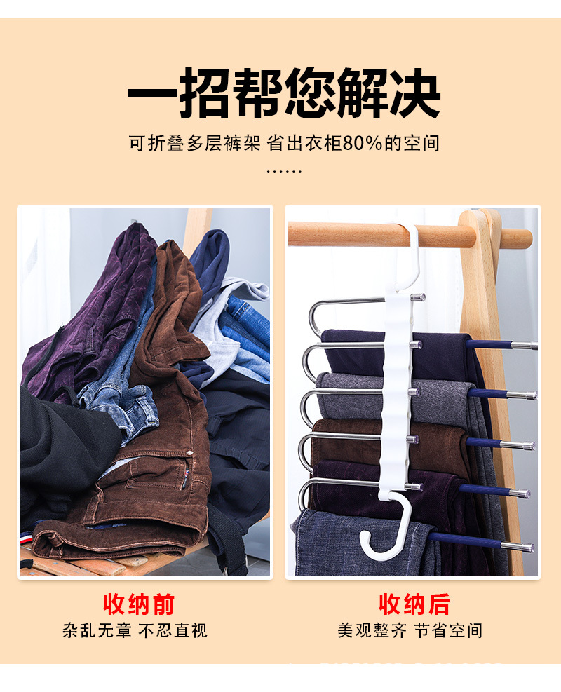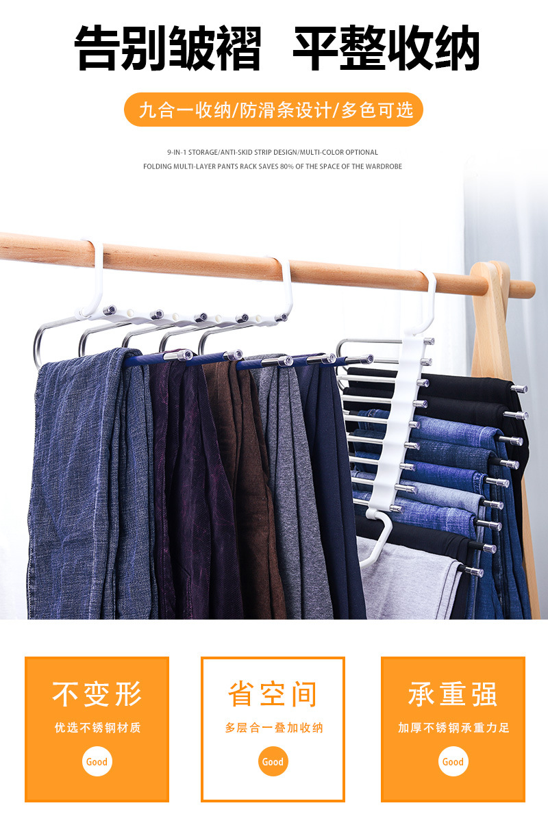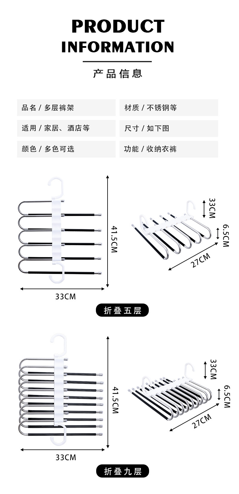 바지걸이, 접이식 스테인레스 스틸 캐비닛 속옷 걸이, 다층 흔적 없는 바지 클립, 접이식 옷걸이, 수납 선반, 수평 및 수직 걸이스토어 가기