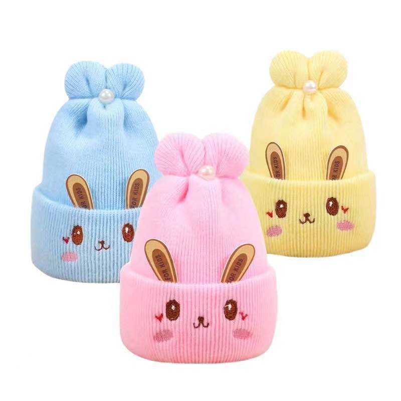 [대량주문] 신생아 모자, 월간 아동 모직 모자, 귀여운 토끼 니트 모자, 태아 모자