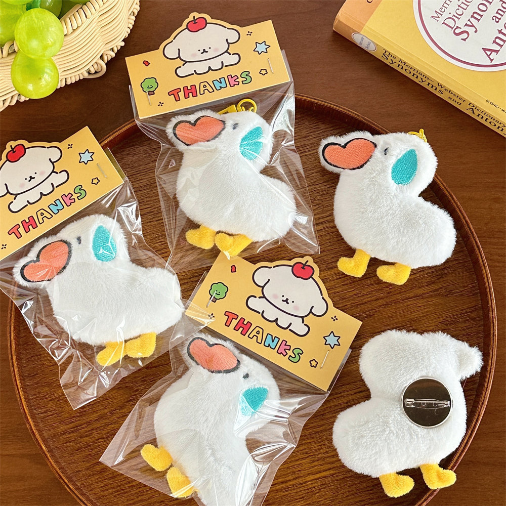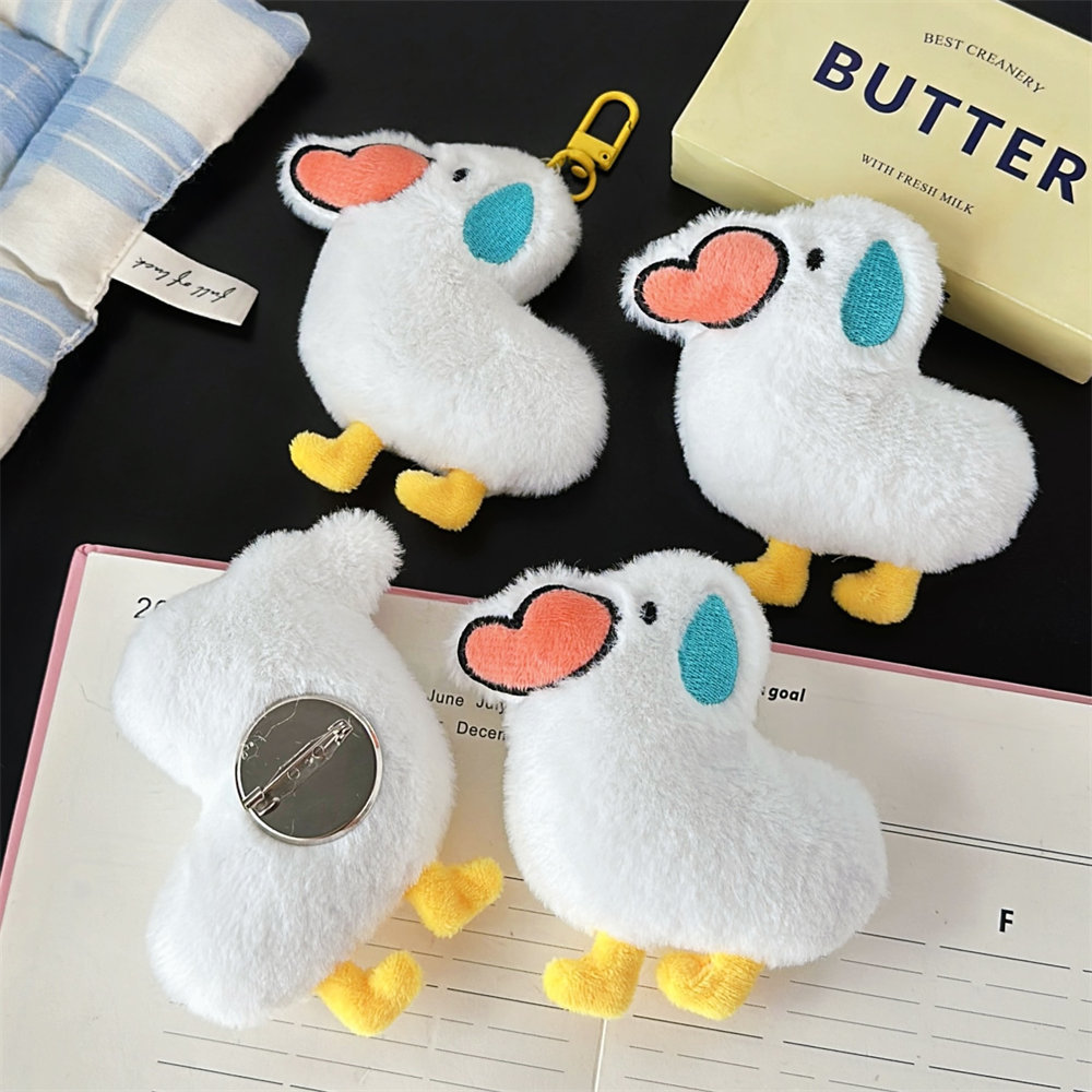 귀여운 웃긴 속삭임없는 거위 봉제 인형 펜던트 여자 하트 배낭 액세서리 키 체인 펜던트 장식 브로치