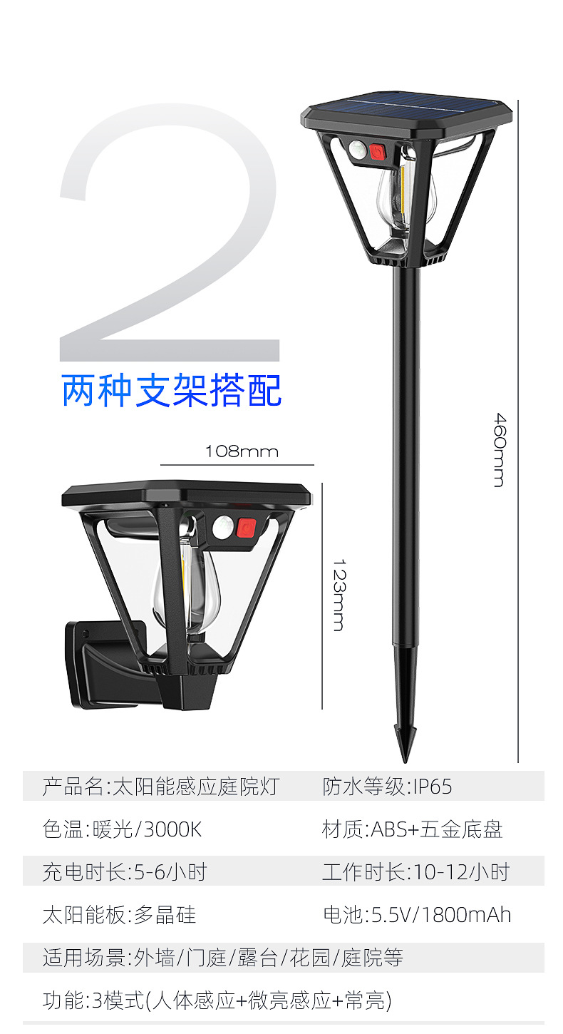 국경 간 새로운 태양 정원 조명 야외 방수 유도 벽 조명 LED 조경 잔디 조명 벽 조명