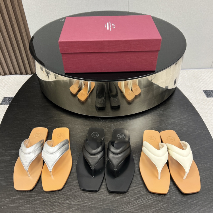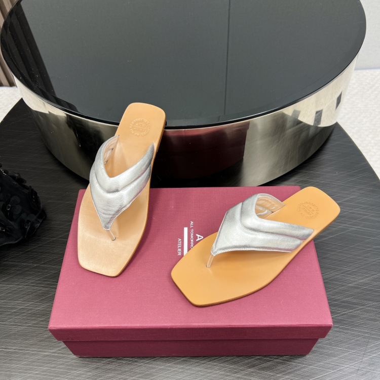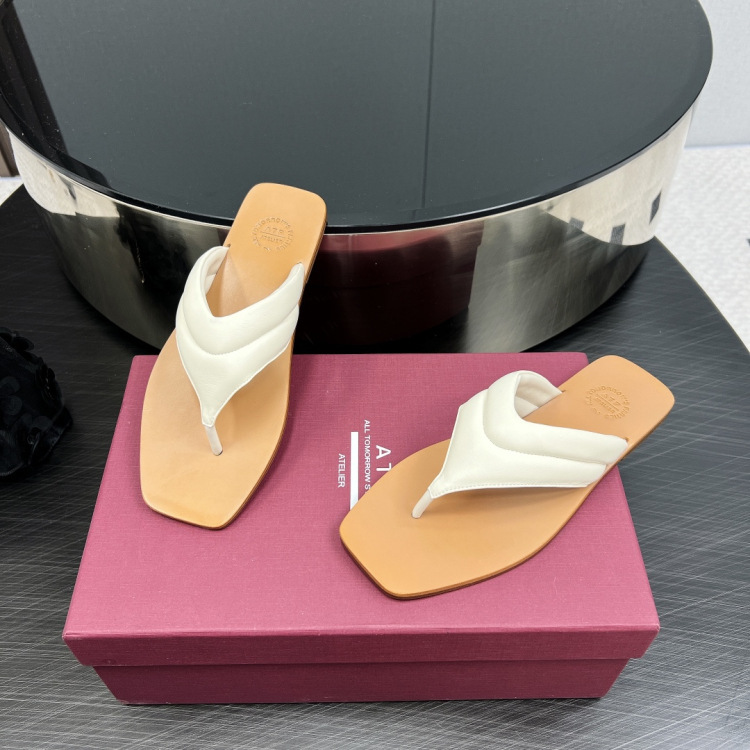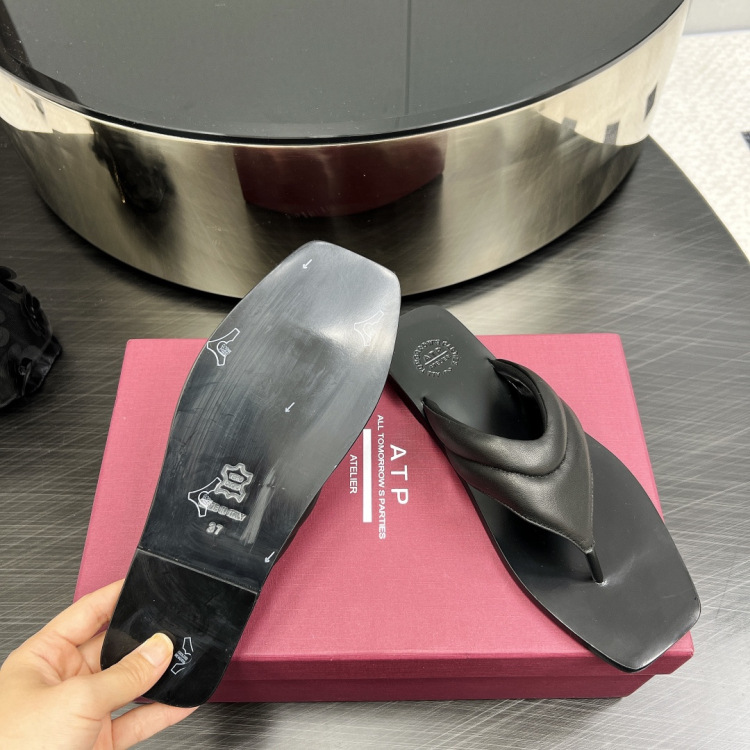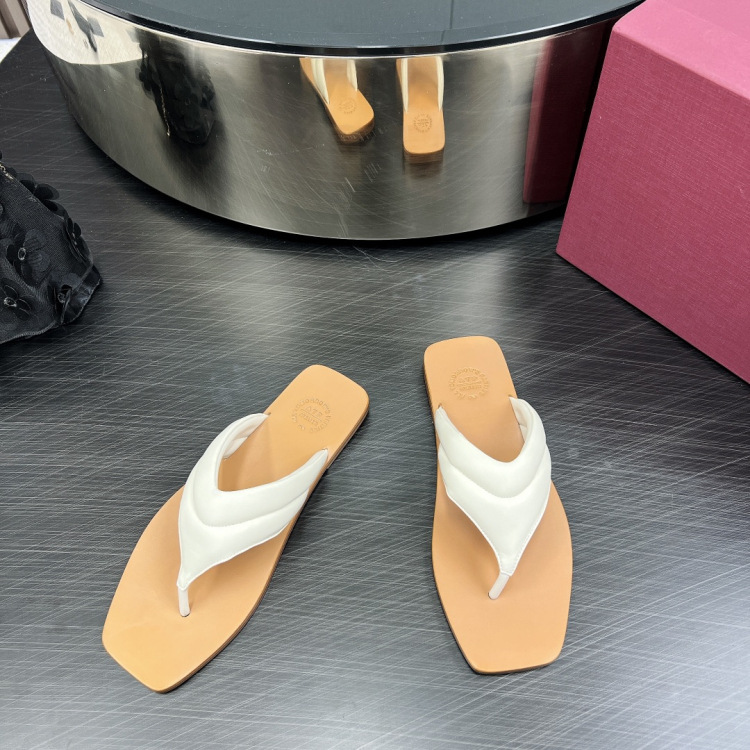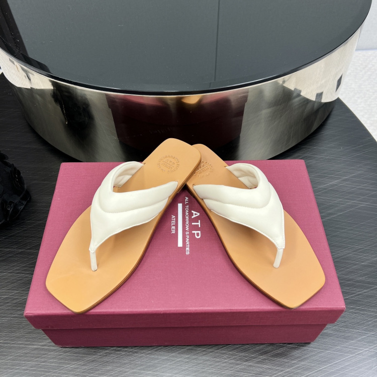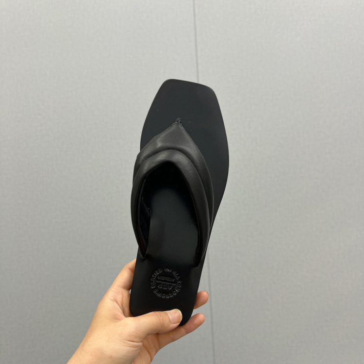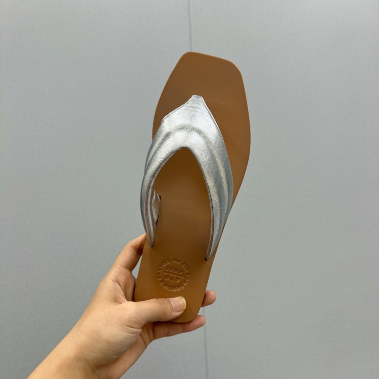 하이 엔드 ATP24 새로운 수입 Cowhide Niche 빈티지 스퀘어 헤지 클립 토 클립 발가락 플랫 플립 플롭 샌들 여성용스토어 가기
