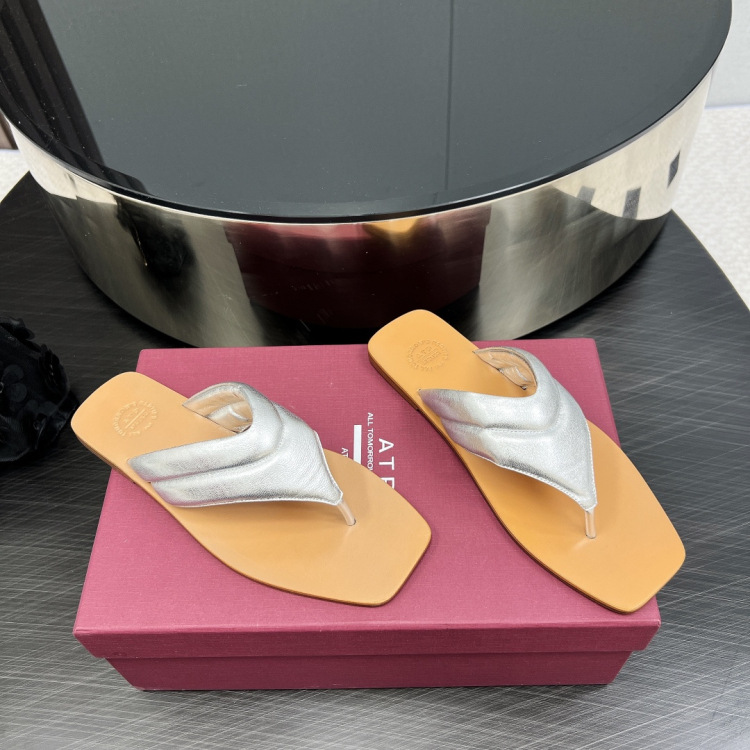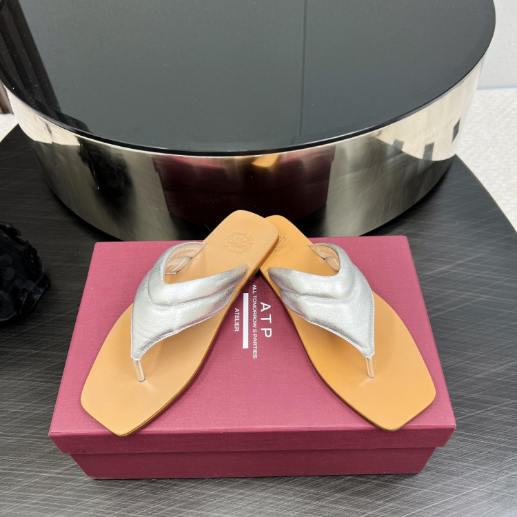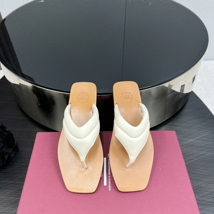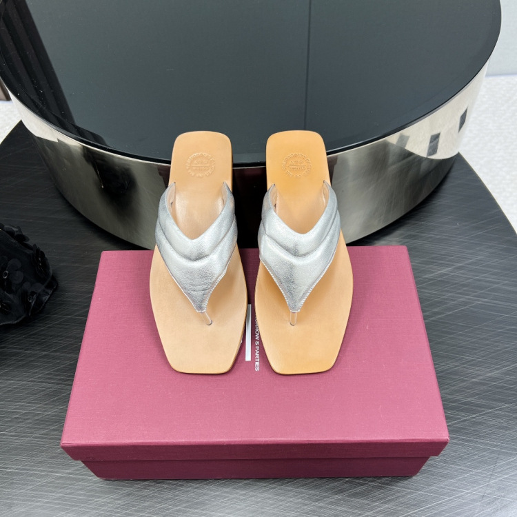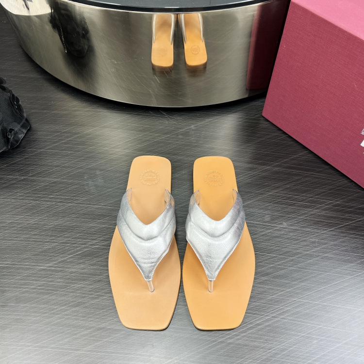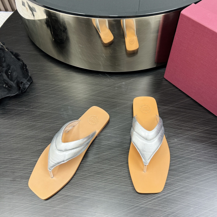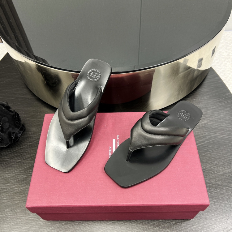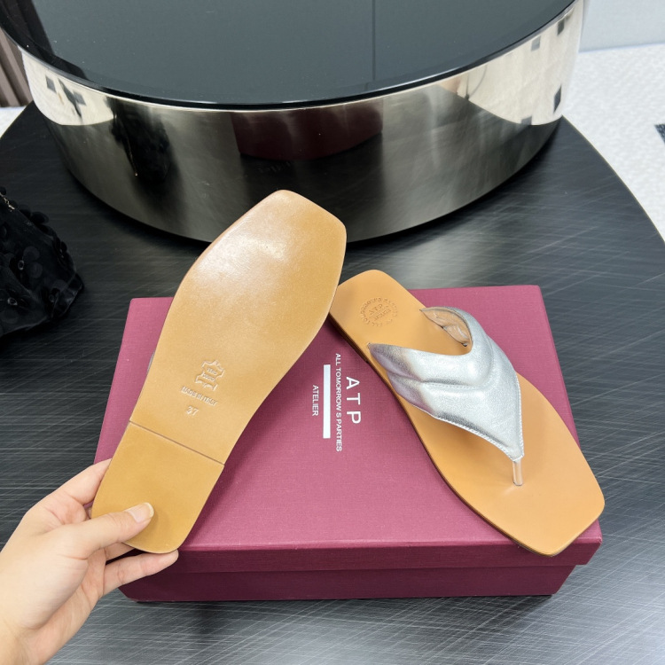 하이 엔드 ATP24 새로운 수입 Cowhide Niche 빈티지 스퀘어 헤지 클립 토 클립 발가락 플랫 플립 플롭 샌들 여성용스토어 가기