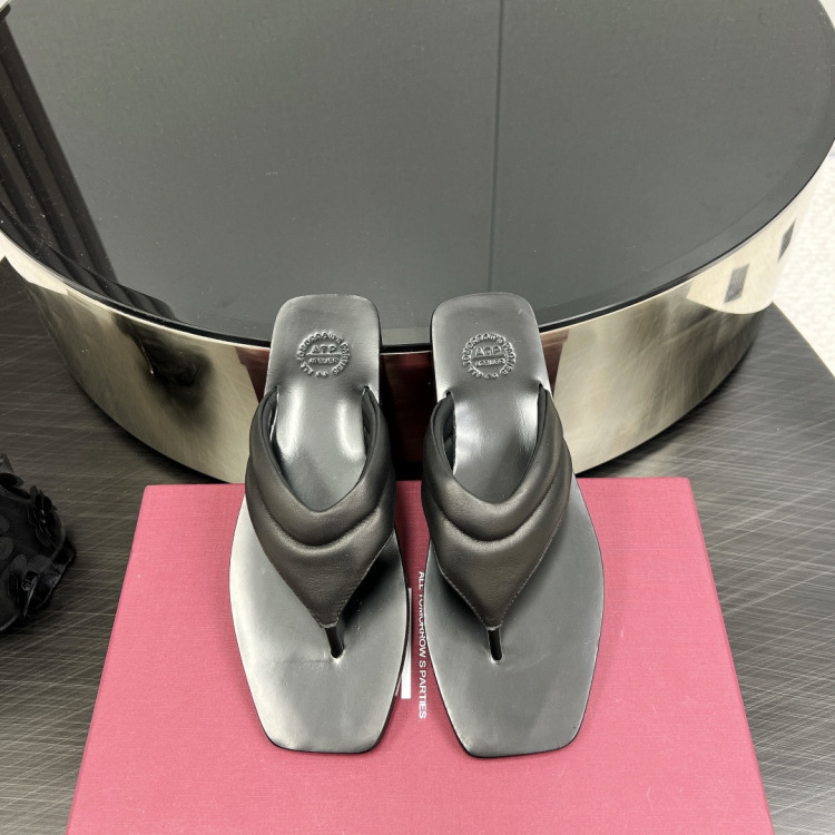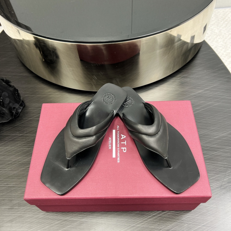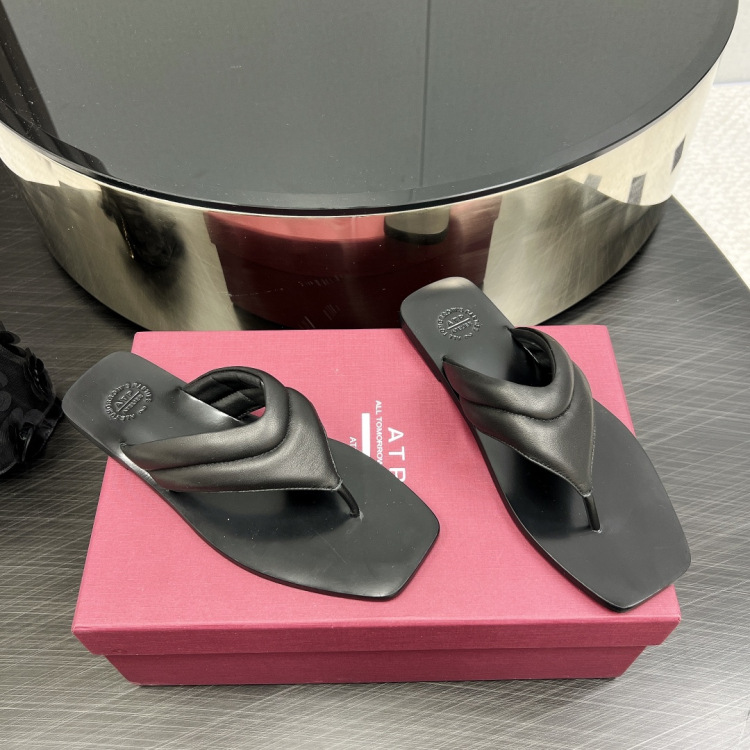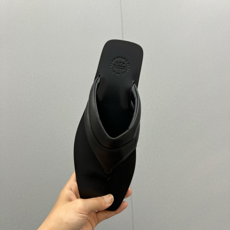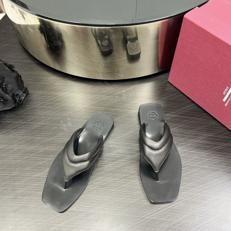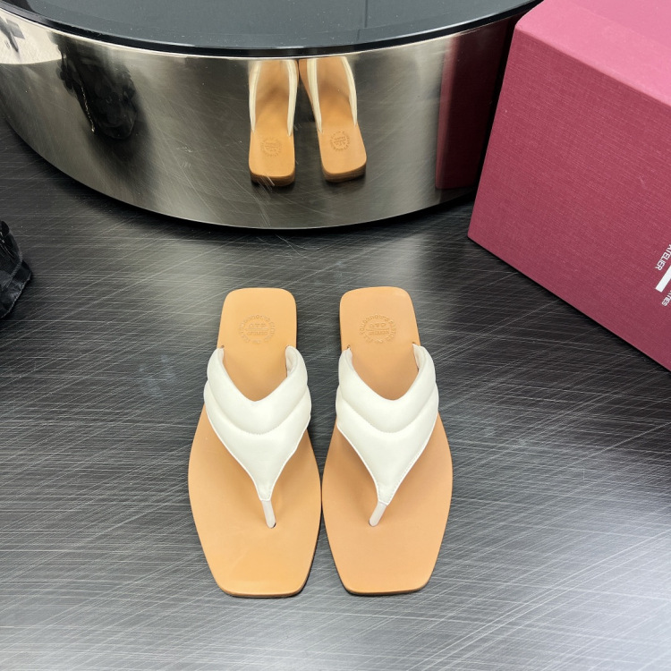 하이 엔드 ATP24 새로운 수입 Cowhide Niche 빈티지 스퀘어 헤지 클립 토 클립 발가락 플랫 플립 플롭 샌들 여성용