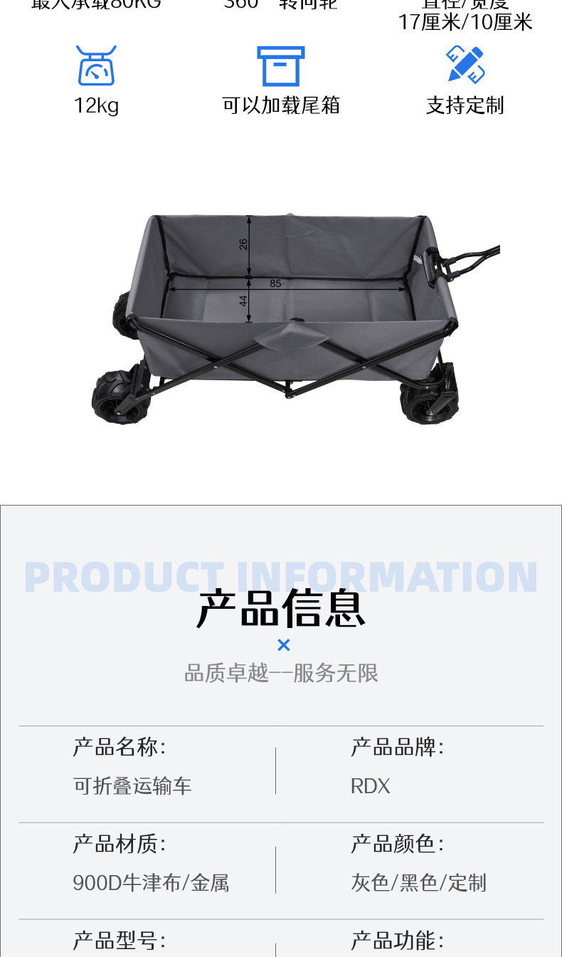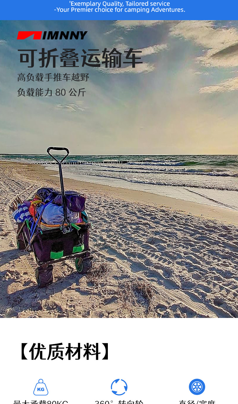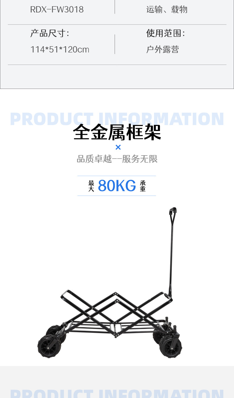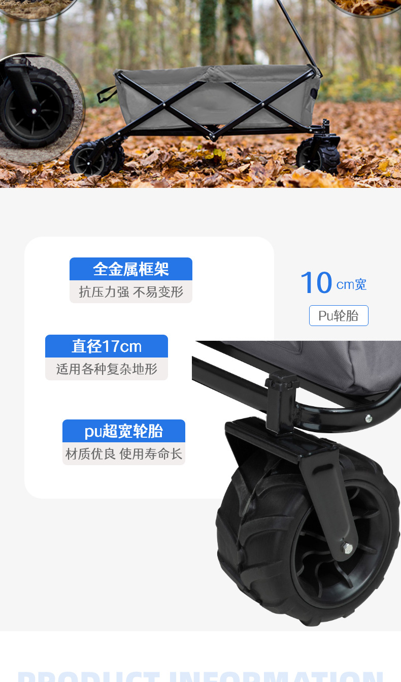 야외 오프로드 캠퍼 점보 트롤리 모든 지형 내구성 고무 휠 트롤리 트레일러 캠프 카스토어 가기
