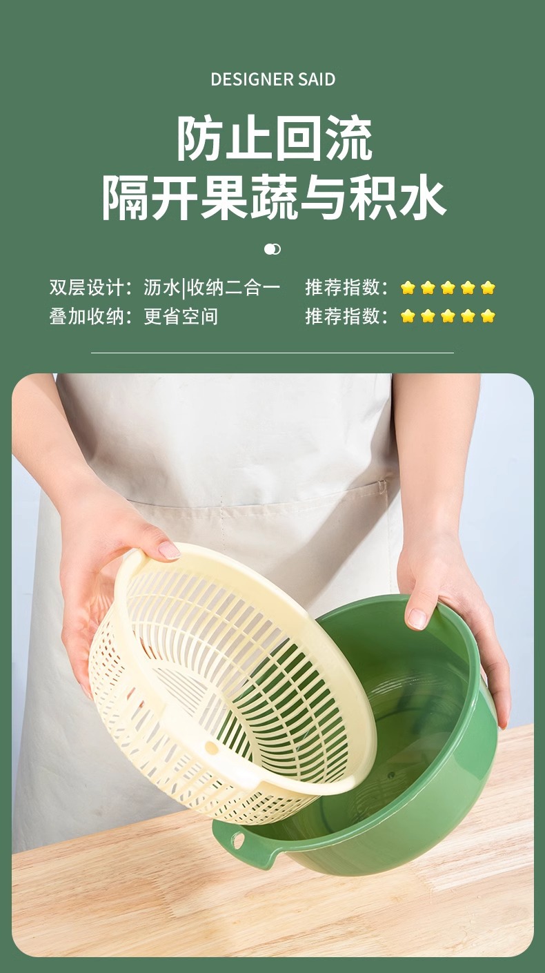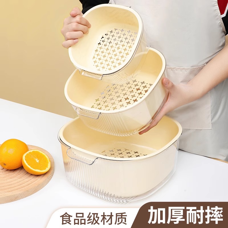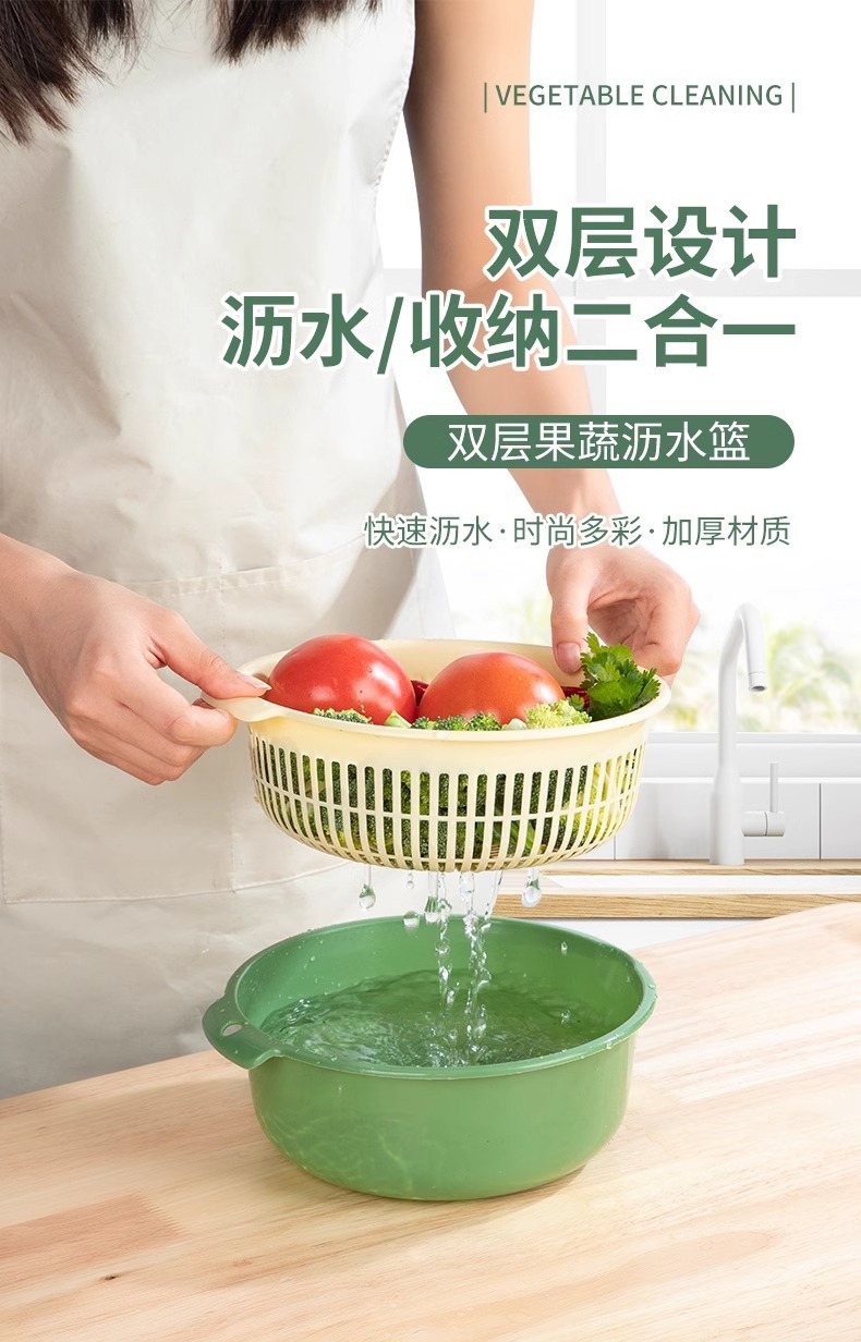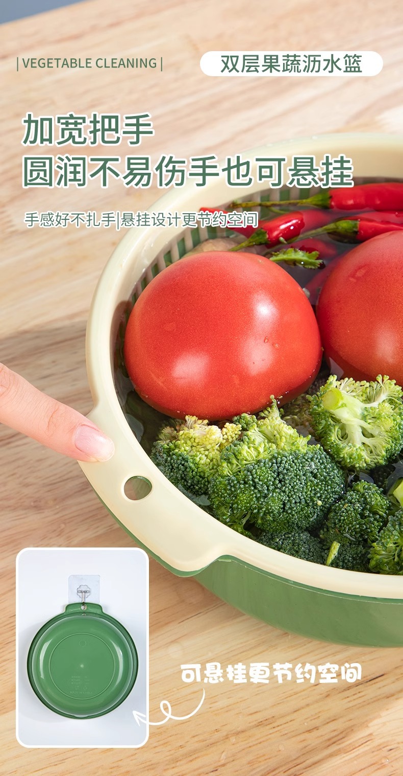 두꺼운 더블 레이어 야채 세척 분지 배수 바구니 분지 가정용 주방 세척 과일 플레이트 거실 필터 야채 바구니 패닝 야채 바구니