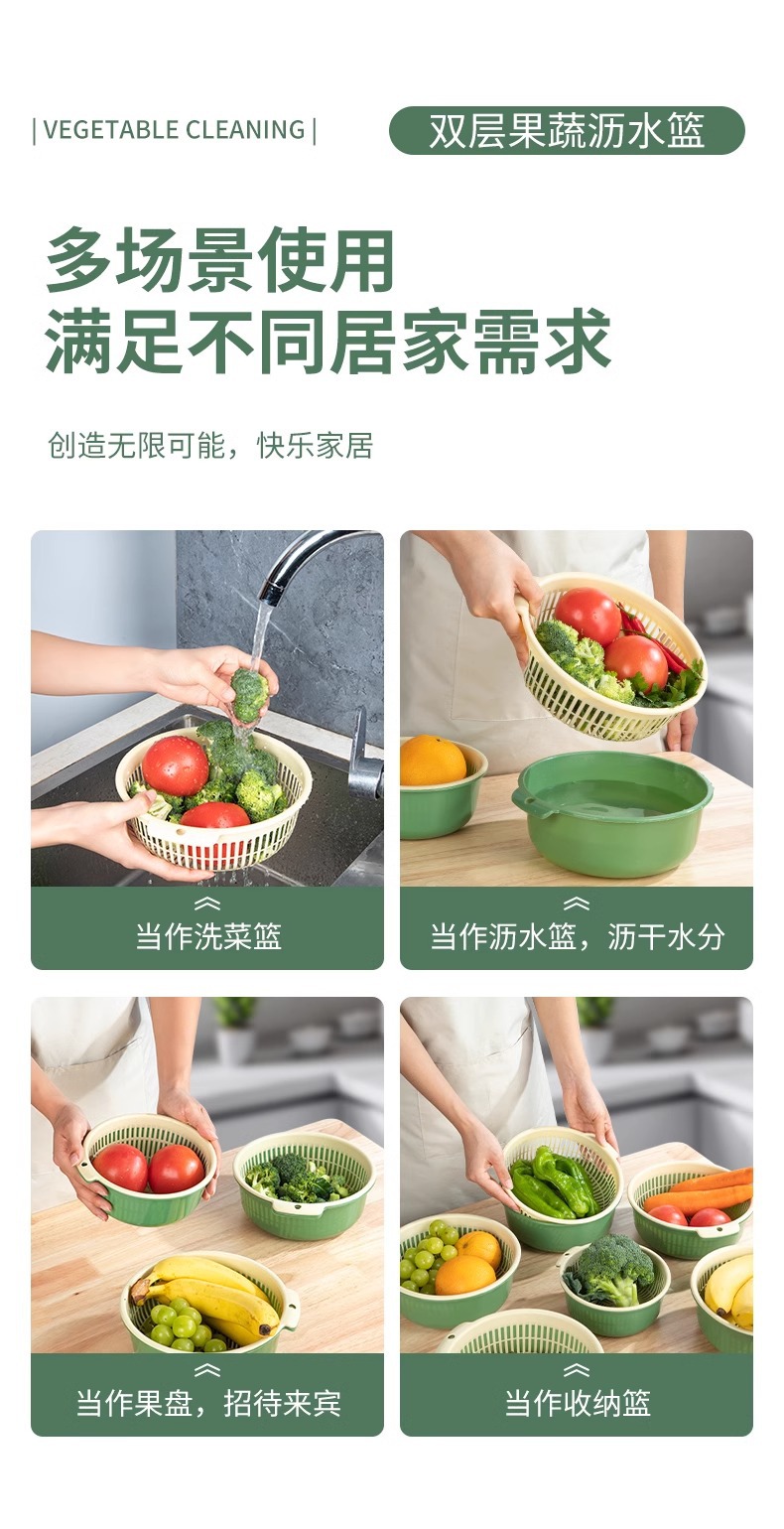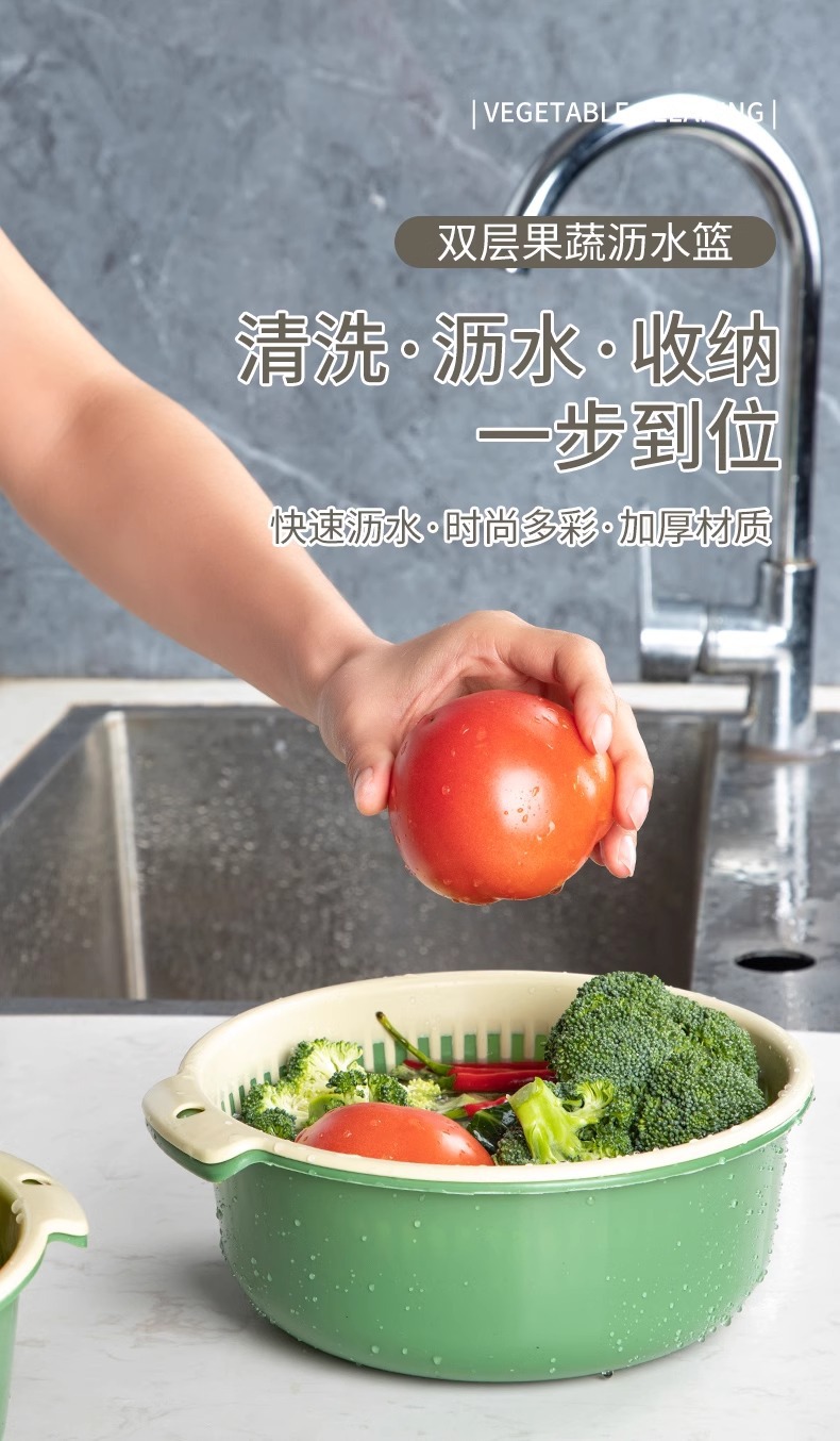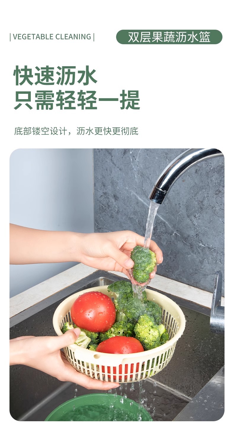 두꺼운 더블 레이어 야채 세척 분지 배수 바구니 분지 가정용 주방 세척 과일 플레이트 거실 필터 야채 바구니 패닝 야채 바구니
