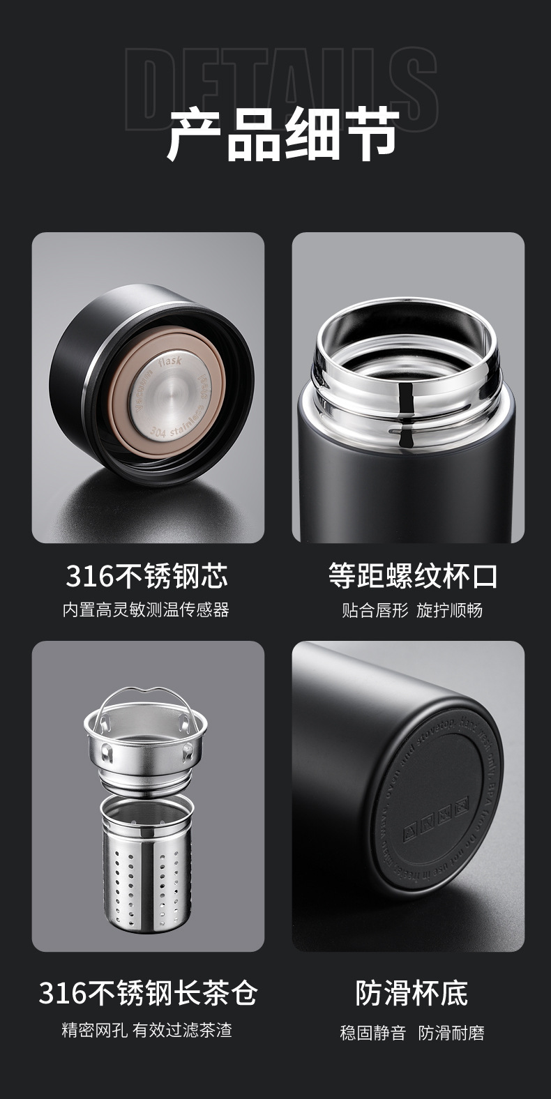 스테인레스 스틸 보온병 컵 남자 316 차 분리 디지털 디스플레이 절연 차가운 하이 엔드 지능형 보온병 컵 사용자 정의