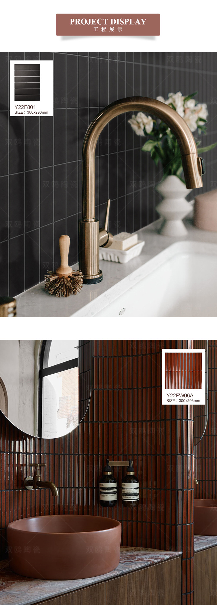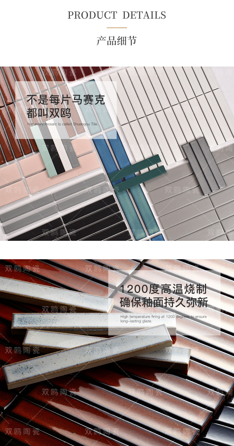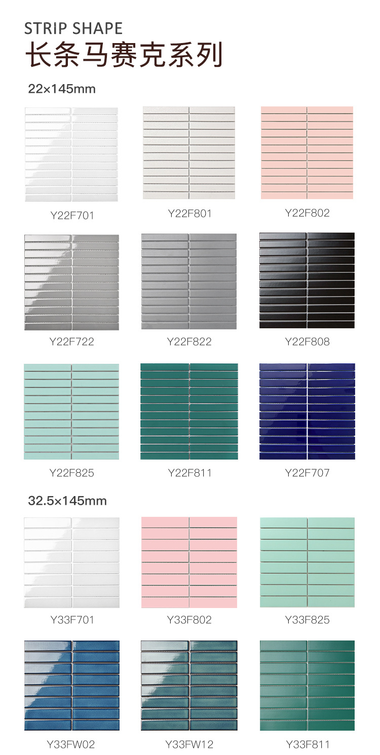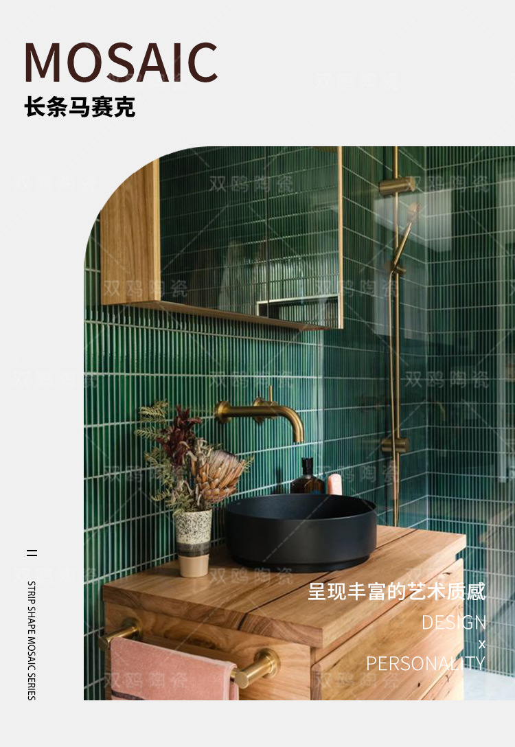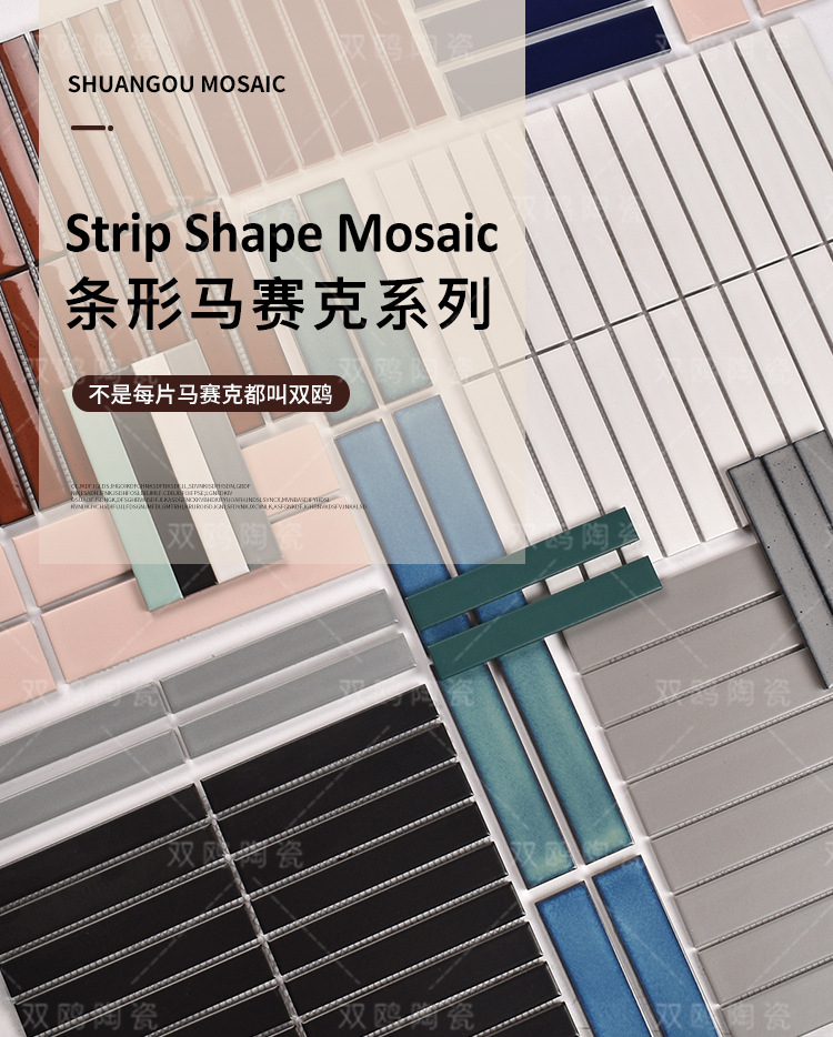 북유럽 긴 스트립 세라믹 모자이크 타일 욕실 화장실 주방 카페 바 벽 장식 방수