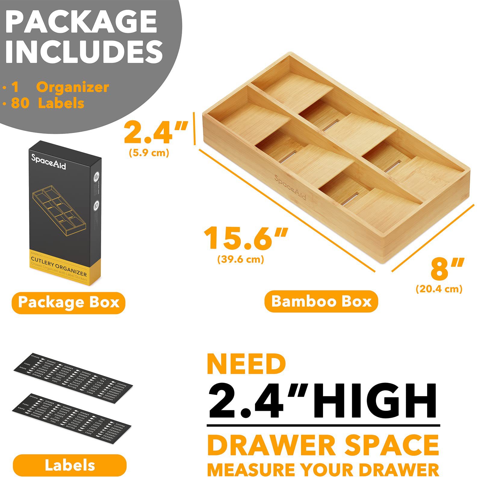식기류를 보관할 수 있는 대나무 서랍 수납 칸막이 상자, 내장 정리 상자, 칼, 포크, 젓가락 분류, 데스크탑 수납 상자