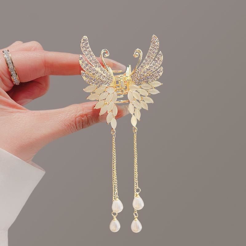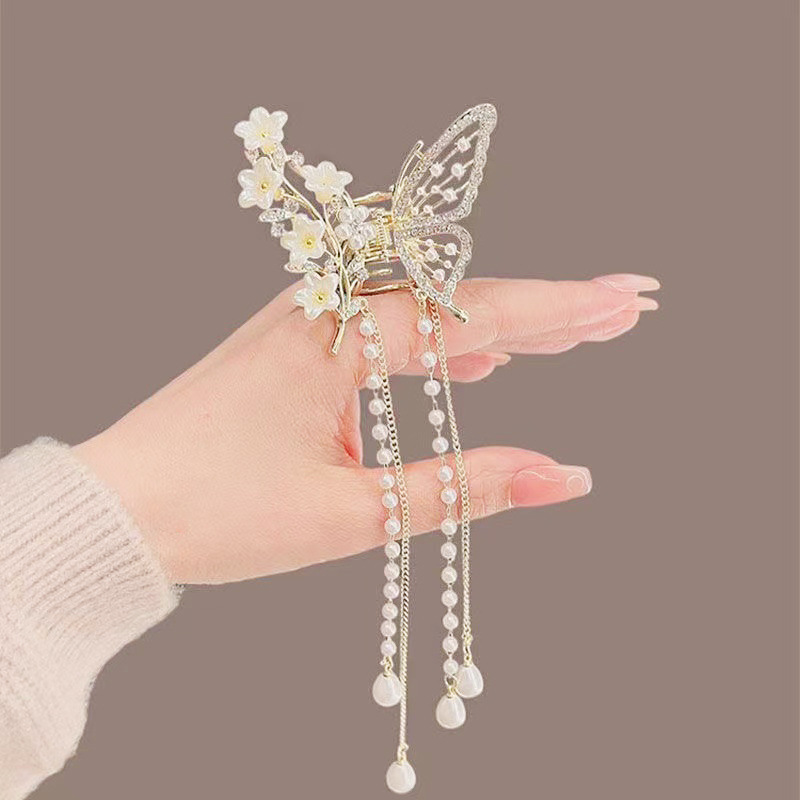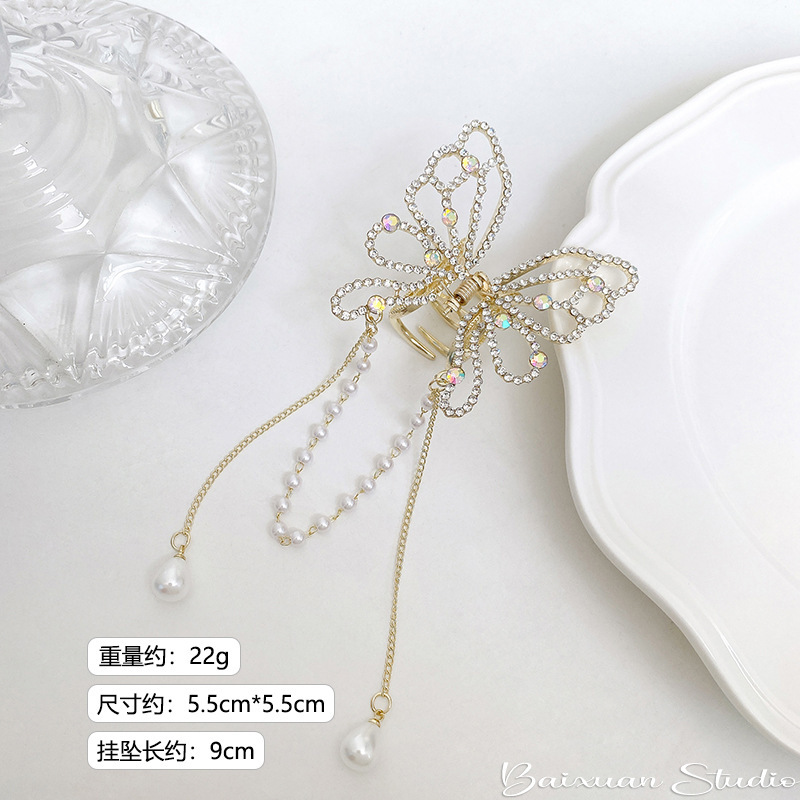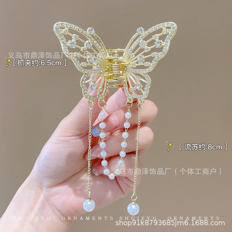 합금 나비 머리핀 한국 하이 엔드 감각 절묘한 진주 술 헤어 액세서리 하프 헤어 클립 여성 머리 장식 도매스토어 가기