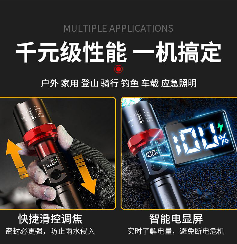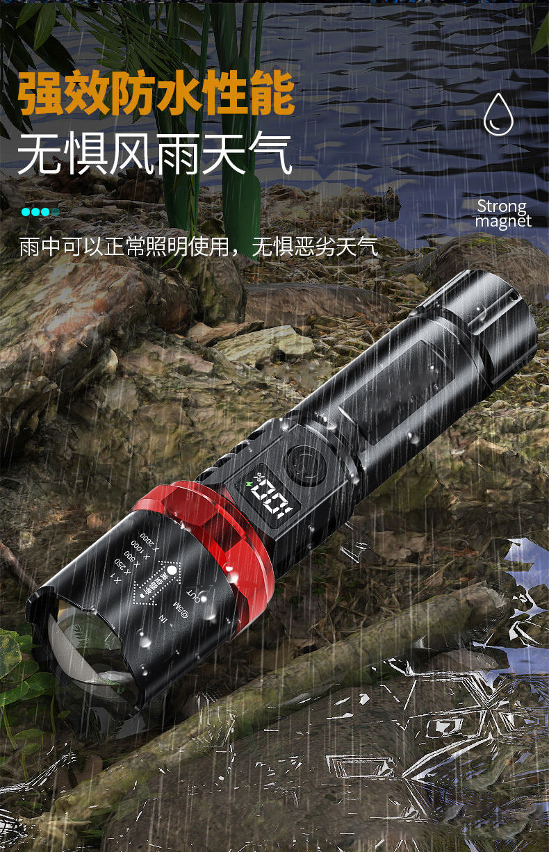 화이트 레이저 손전등 디지털 디스플레이로 충전식 슈퍼 밝은 야외 조명 홈 휴대용 망원경 줌