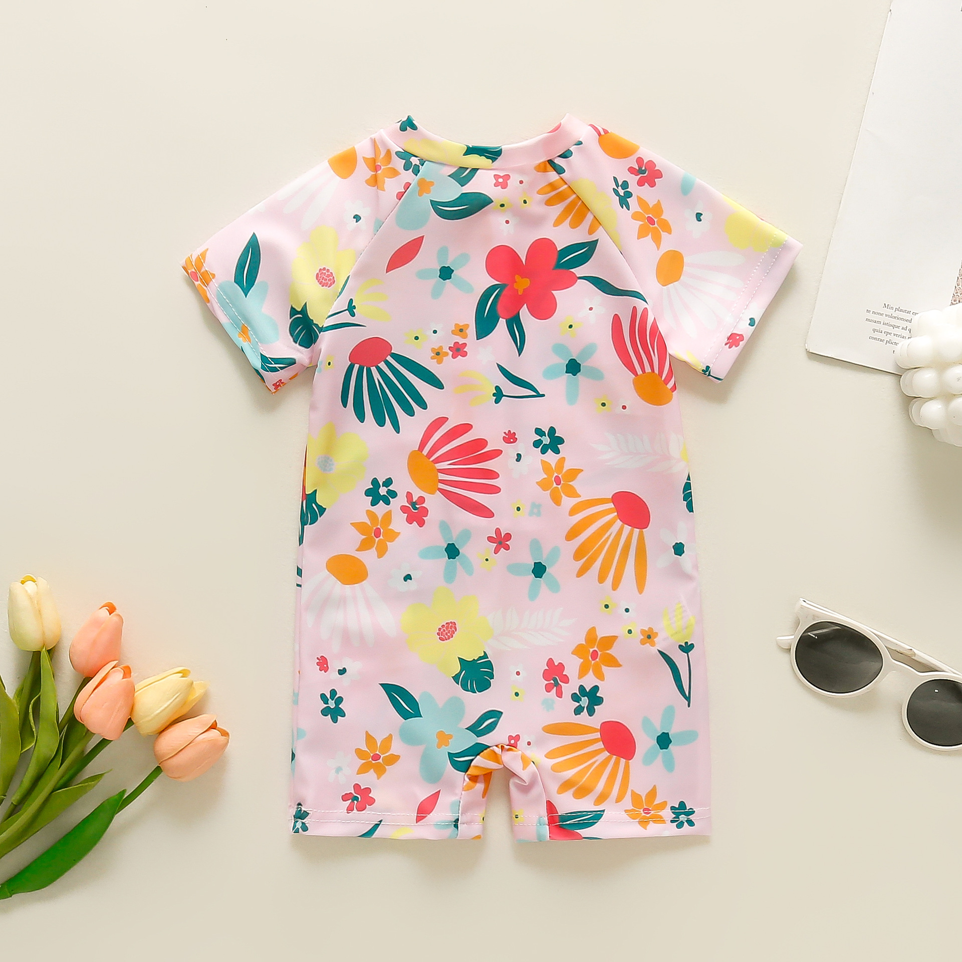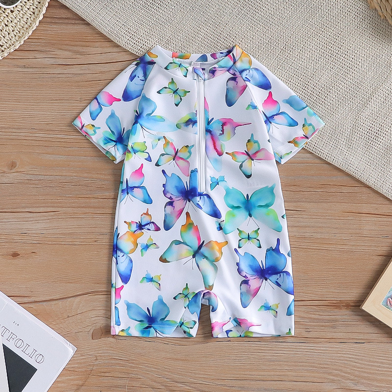 국경 간 아동복 소녀 꽃 풀 프린트 원피스 수영복 여성 아기 반 오픈 바디 세트 어린이 수영복 0-5T