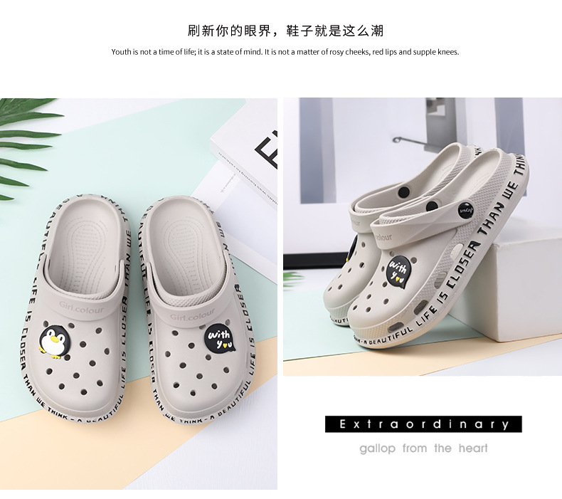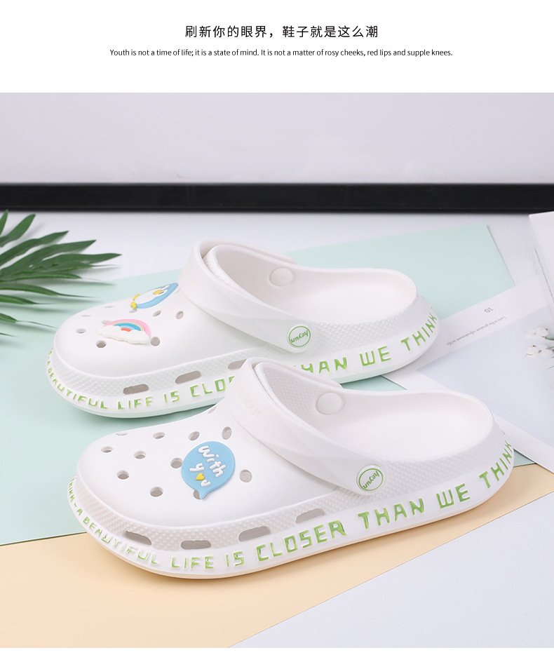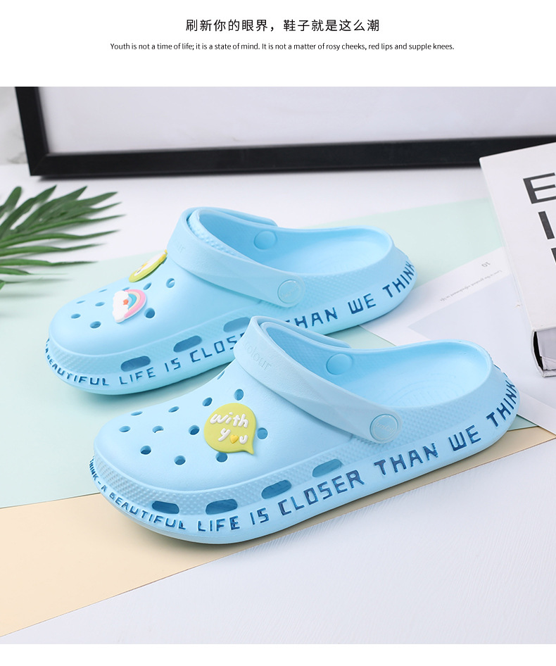 새로운 높은 탄성 고무 EVA 커플은 그물 빨간 바오터우 구멍 신발 두 착용 샌들 미끄럼 방지 두꺼운 바닥 1823B스토어 가기