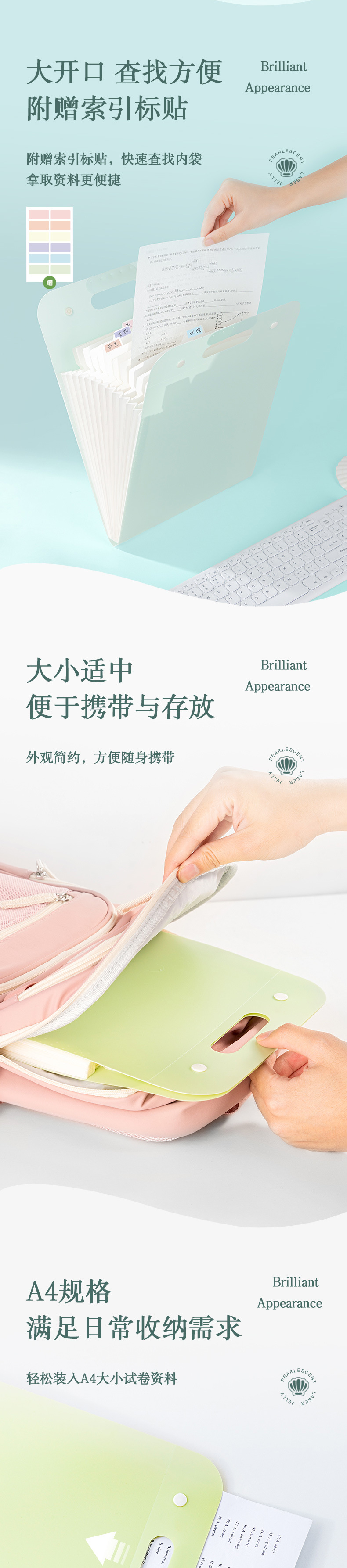 델리 PM323 휴대용 수직 오르간 가방 테스트 종이 홀더 저장 가방 중학생 보관 및 정렬 유물