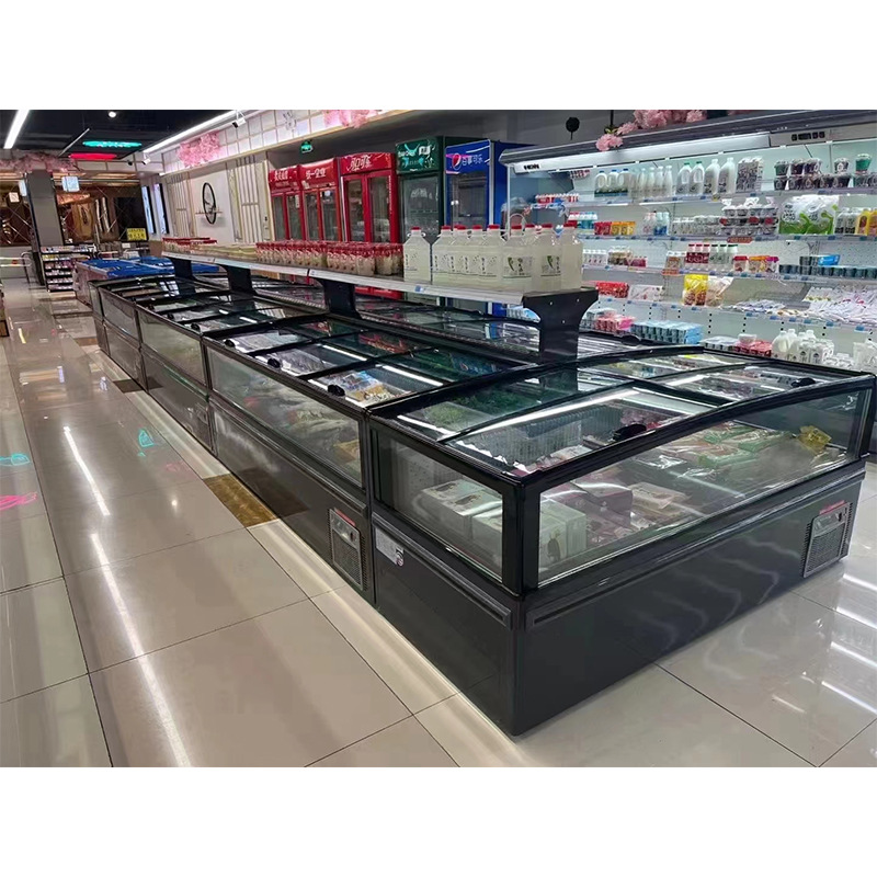 대형 창 자동 해동 조합 아일랜드 캐비닛 상업용 슈퍼마켓 냉동 수평 냉장고 디스플레이 캐비닛 냉동고스토어 가기