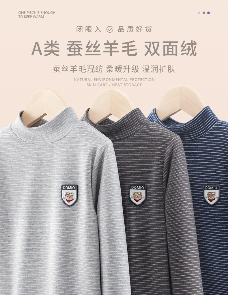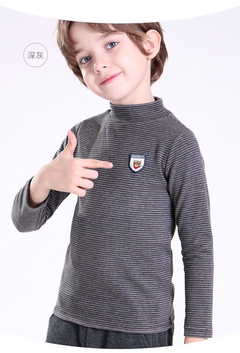 소년 바지 셔츠 어린이 가을 및 겨울 새 긴팔 티셔츠 큰 어린이 내부 반 높이 칼라 기모 탑 따뜻한 가을 옷